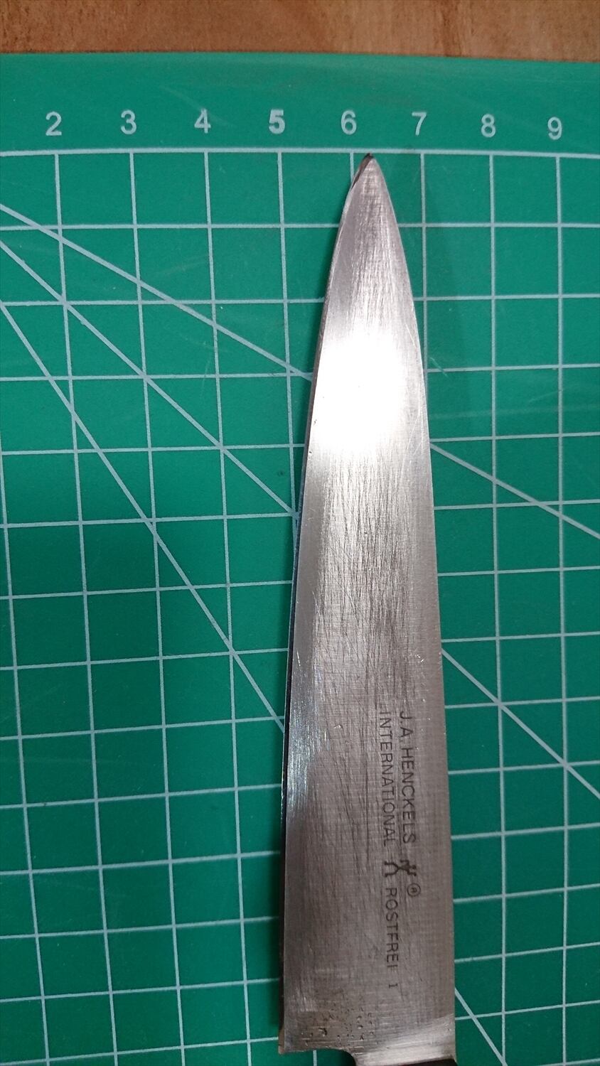 1. o1168/銘:ヘンケルス/ペティナイフ(両刃)/峰厚 アゴ上:1.4/重量:64/作り:STAINLESS STEEL?/他:ヒラにひっかき傷が多数有り