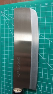 1. o1189/銘:関鍔蔵作/菜切包丁(両刃)/峰厚 アゴ上:1.5/重量:129/作り:ステンレス?/他: