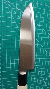 1. o1190/銘:関鍔蔵作/三徳包丁(両刃)/峰厚 アゴ上:1.4/重量:100/作り:ステンレス?/他: