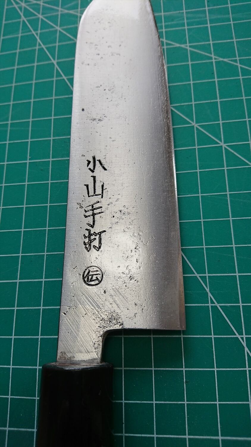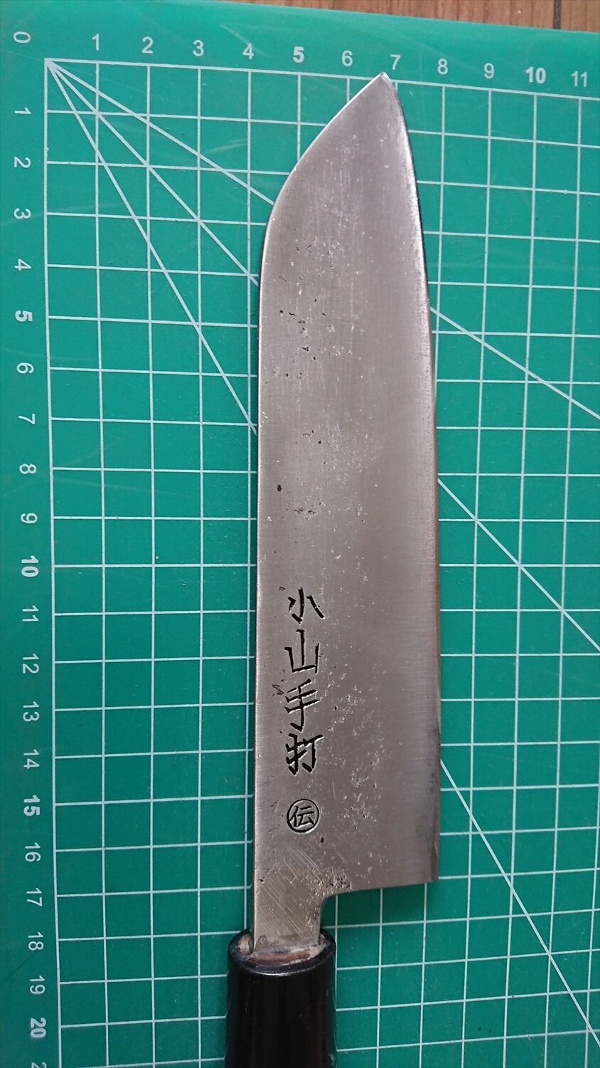 1. o1273/銘:小山/三徳包丁(両刃)/刃長:170/峰厚 アゴ上:3.5/重量:126/作り:鋼? 手打 ○伝/他: