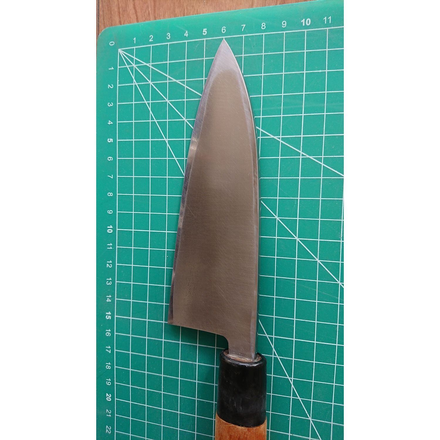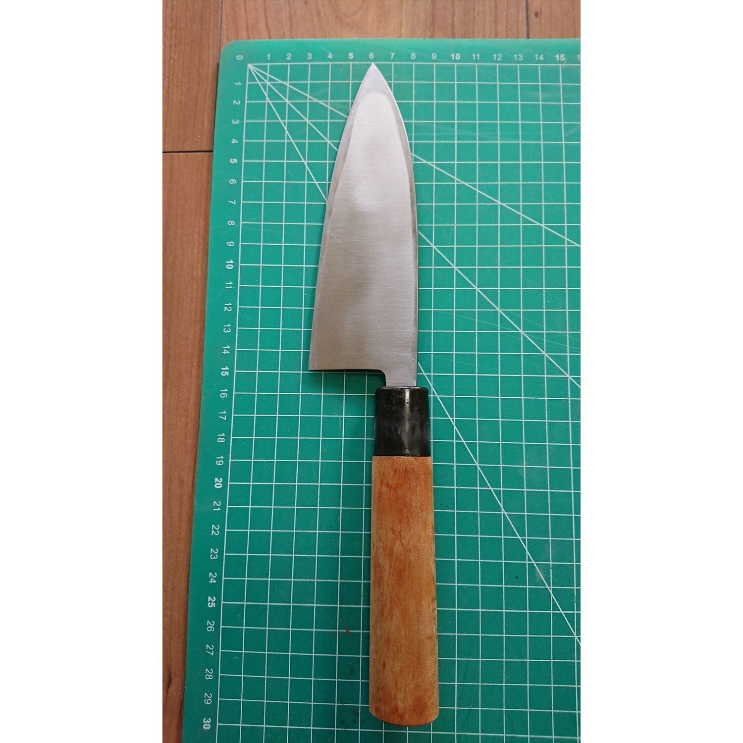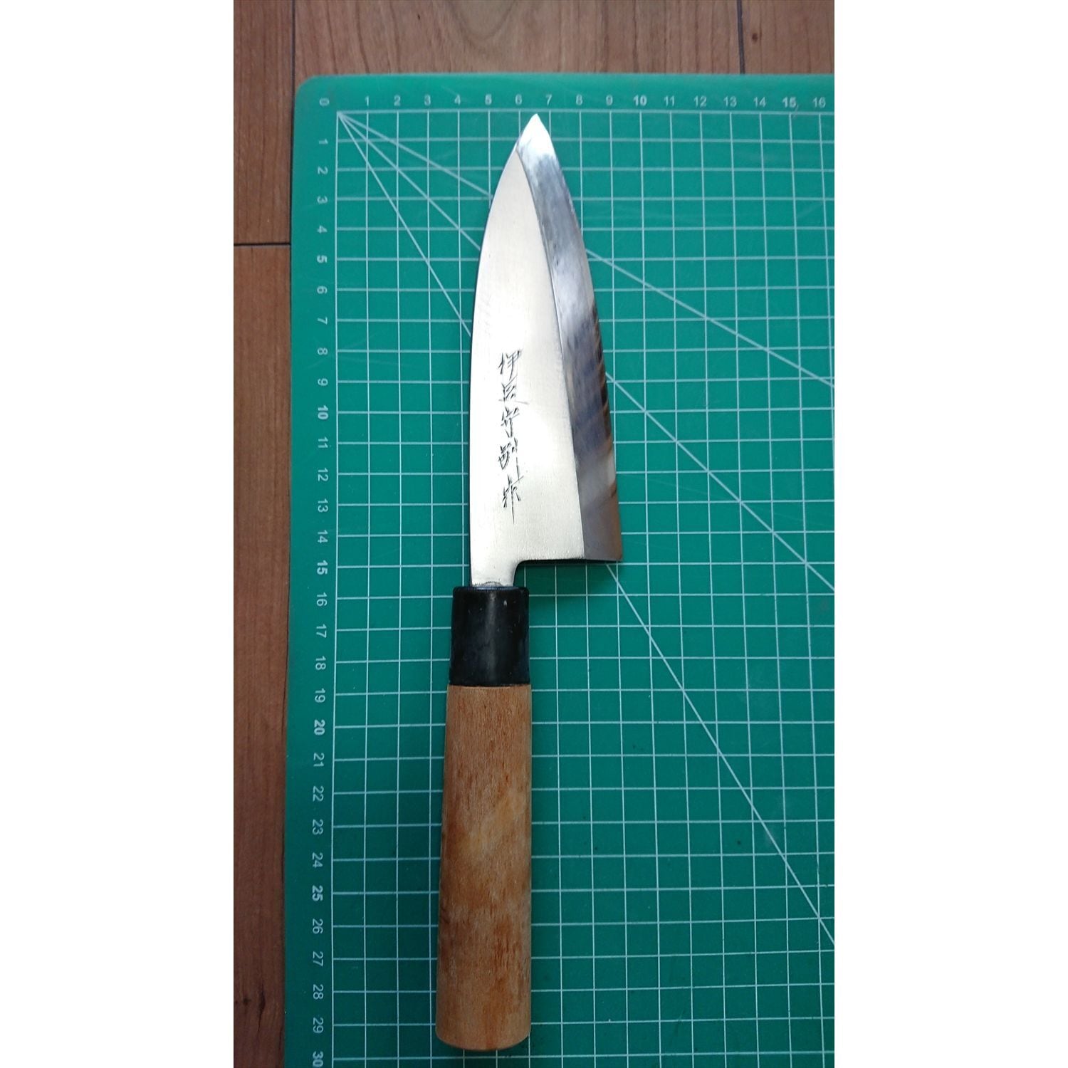 1. o1295/銘:伊豆守/相出刃包丁(片刃)/刃長:145/峰厚 アゴ上:4.7/重量:219/作り:鋼? 別作 手造り/他: