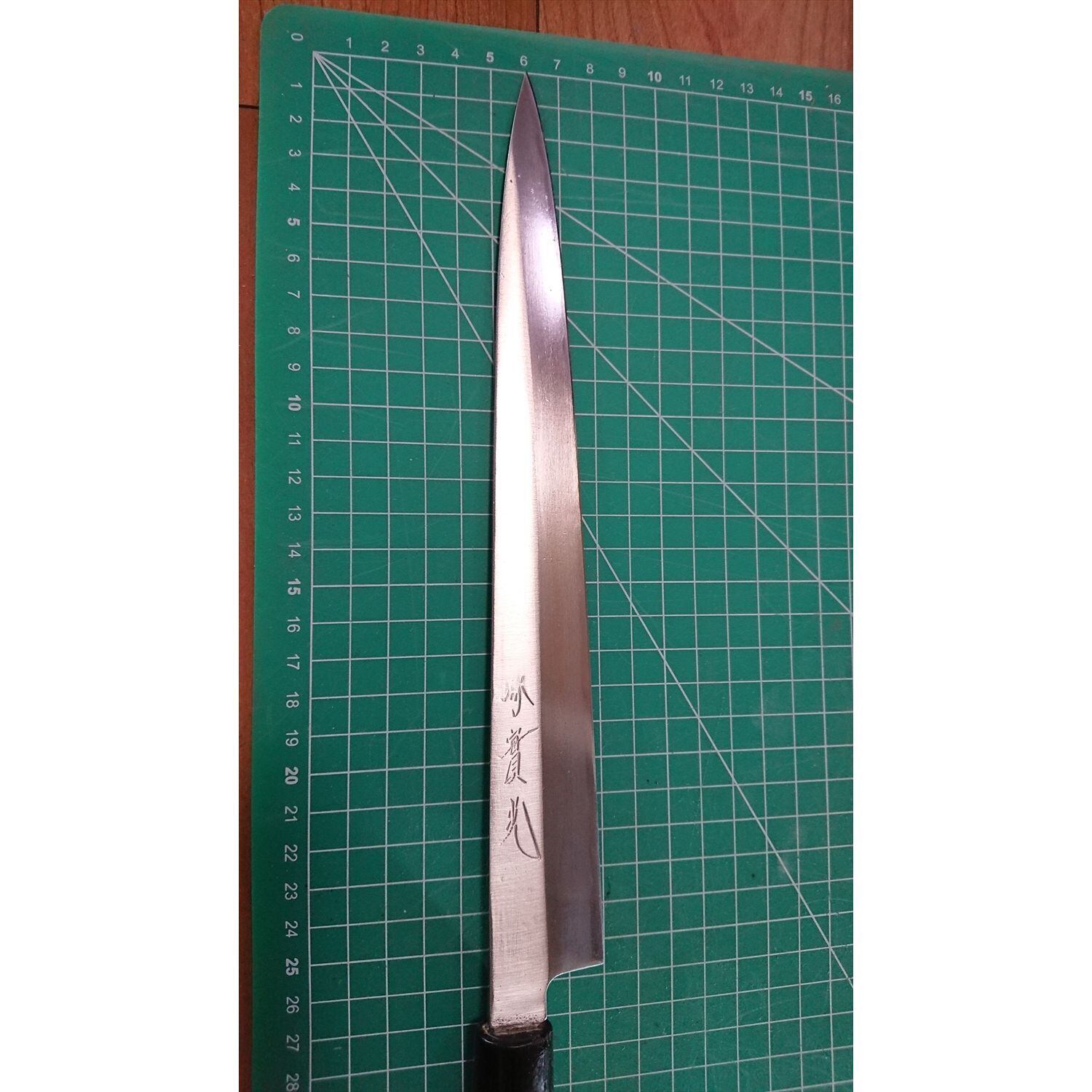 1. o1331/銘:堺實光/刺身包丁(片刃)/刃長:255/峰厚 アゴ上:4/重量:180/作り:鋼?/他: