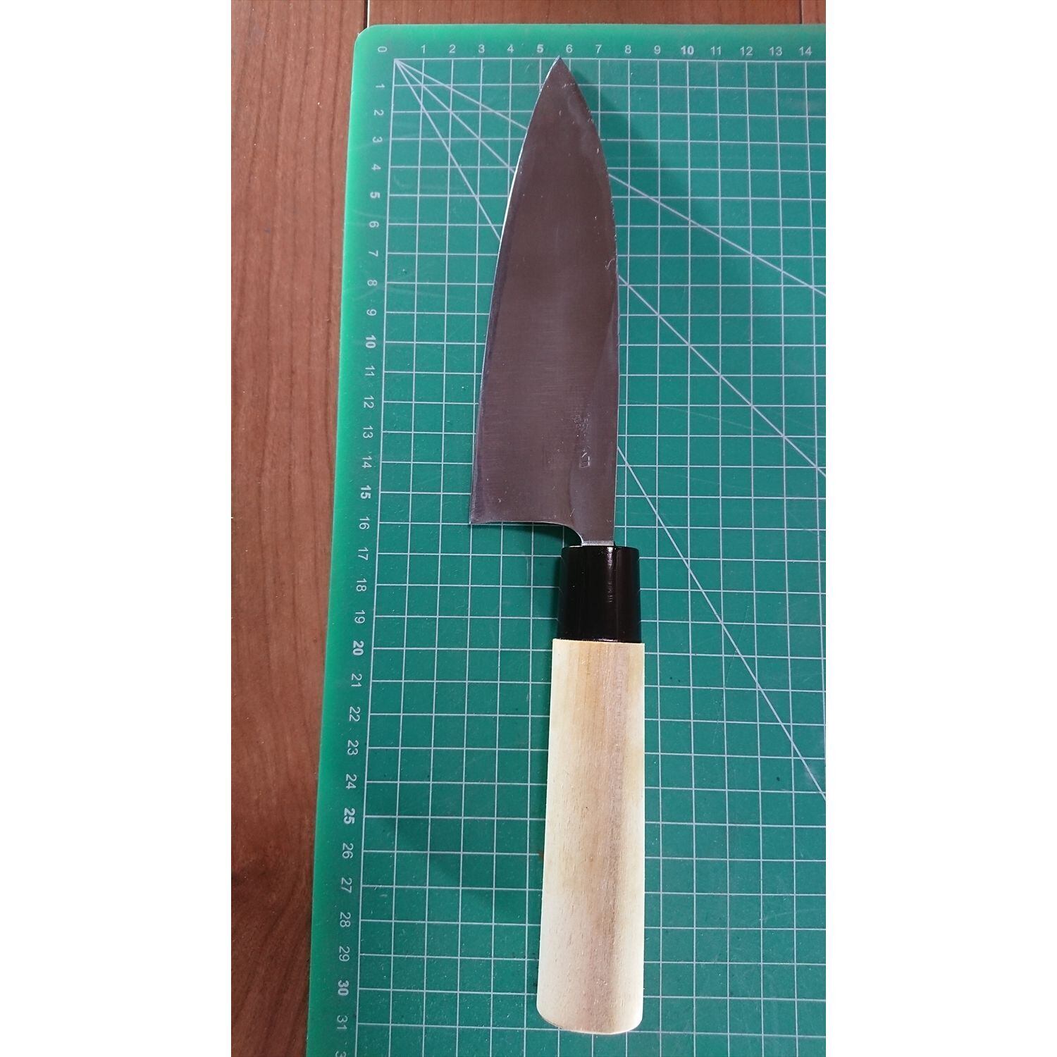 1. o1367/銘:耺専別作 関孫六/出刃包丁(両刃 約 左1:右9)/刃長:160/峰厚 アゴ上:8.1/重量:257/作り:安来白(安来鋼白紙?)/他:柄は当社にて新品と交換済み