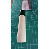 1. o1369/銘:?助?/出刃包丁(片刃)/刃長:160/峰厚 アゴ上:7.5/重量:234/作り:鋼?/他:柄は当社にて新品と交換済み