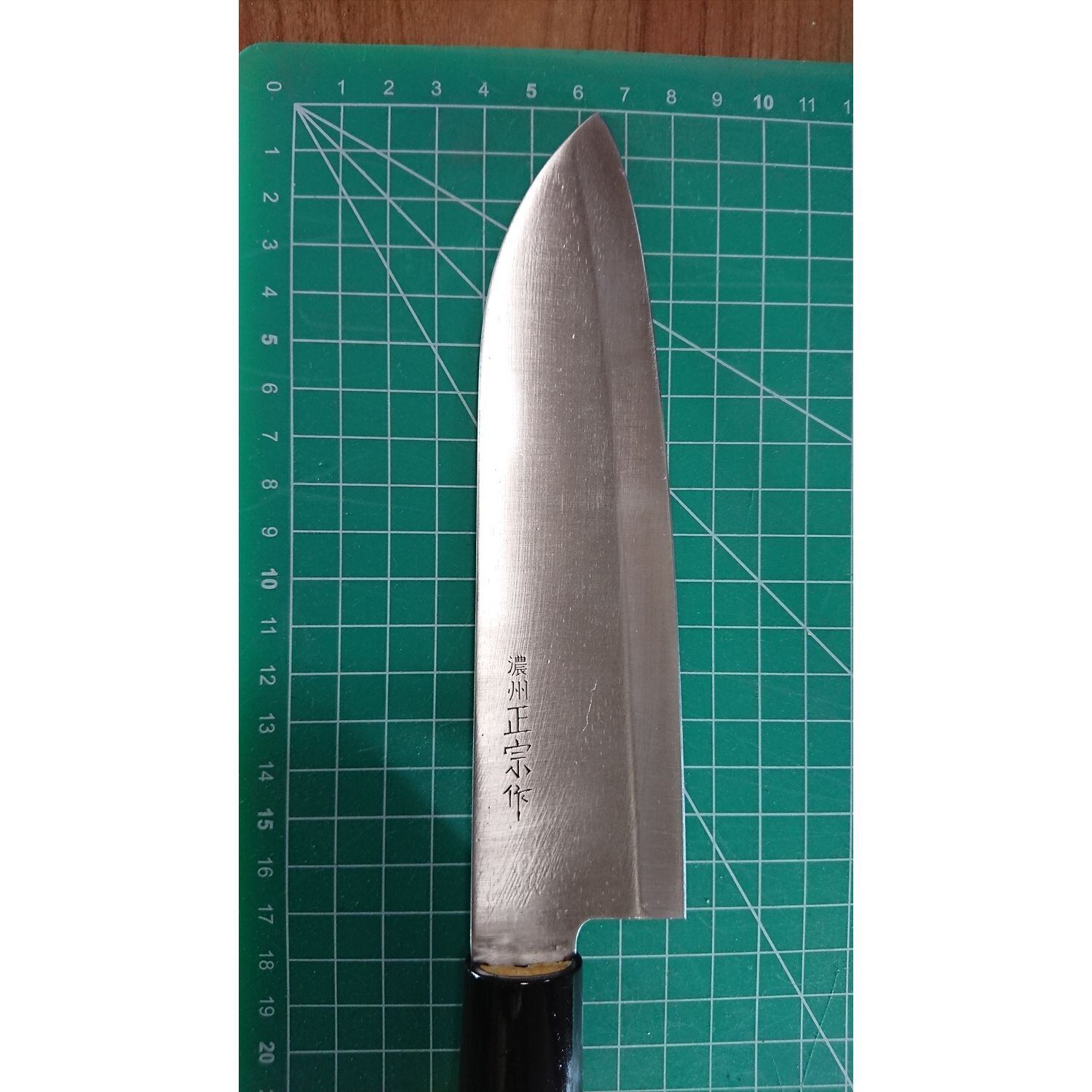 1. o1393/銘:濃州正宗/三徳包丁(両刃)/刃長:170/峰厚 アゴ上:1.5/重量:108/作り:鋼?/他: