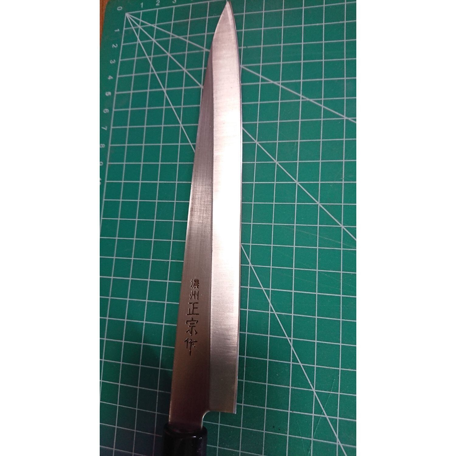 1. o1466/銘:濃州正宗/刺身包丁(片刃 右利き用)/刃長:200/峰厚 アゴ上:1.7/重量:73/作り:鋼?/他: