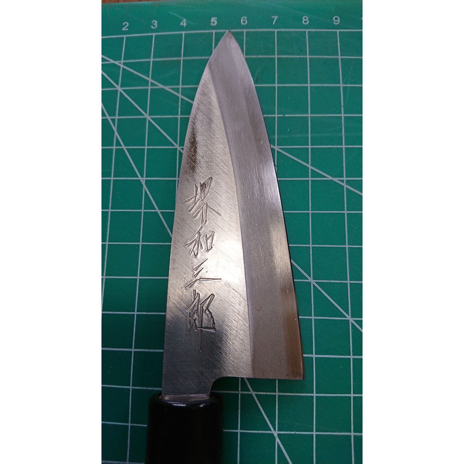 1. o1472/銘:堺和三郎/あじ切り包丁(片刃 右利き用)/刃長:105/峰厚 アゴ上:3.5/重量:79/作り:鋼?/他: