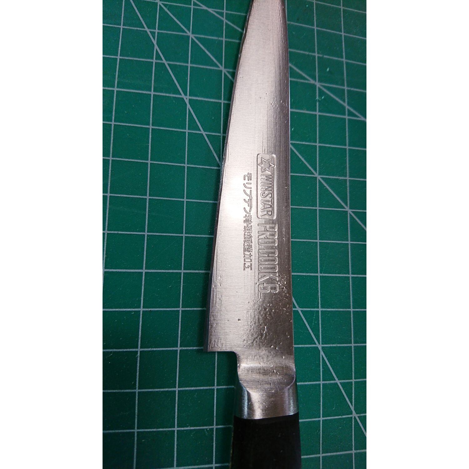 1. o1659/銘:WINSTAR PRO COOK6/ペティナイフ(両刃 右利き・左利き兼用)/刃長:120/峰厚 アゴ上:1.7/重量:74/作り:モリブデン特殊鍛造加工/他: