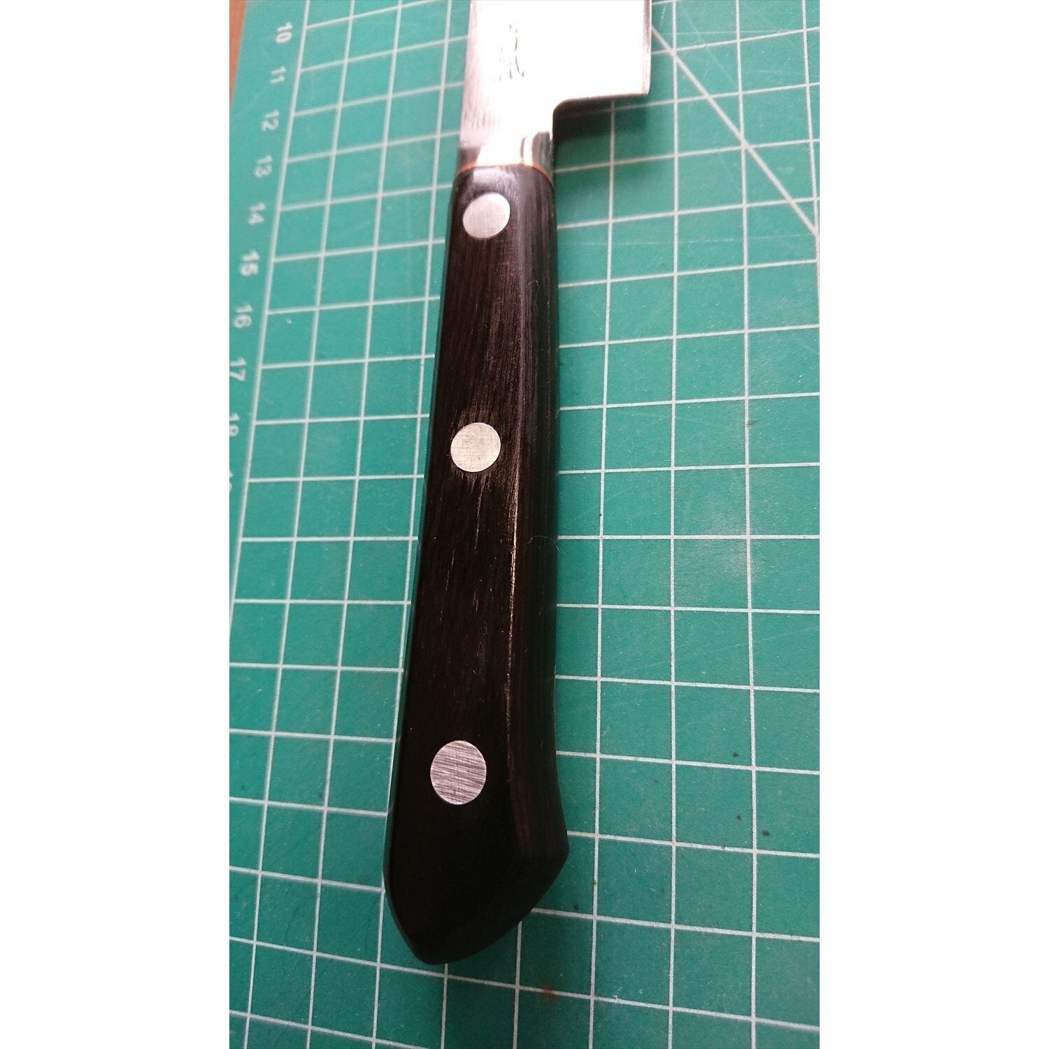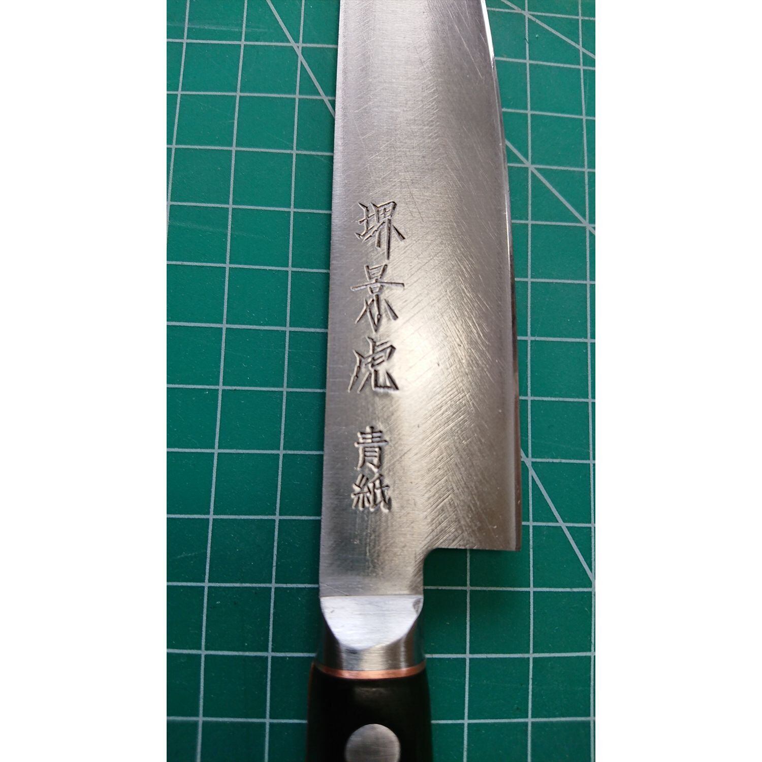 1. o1682/銘:堺景虎/ペティナイフ(両刃 右利き・左利き兼用)/刃長:130/峰厚 アゴ上:1.9/重量:100/作り:青紙(安来鋼 青鋼?)/他: