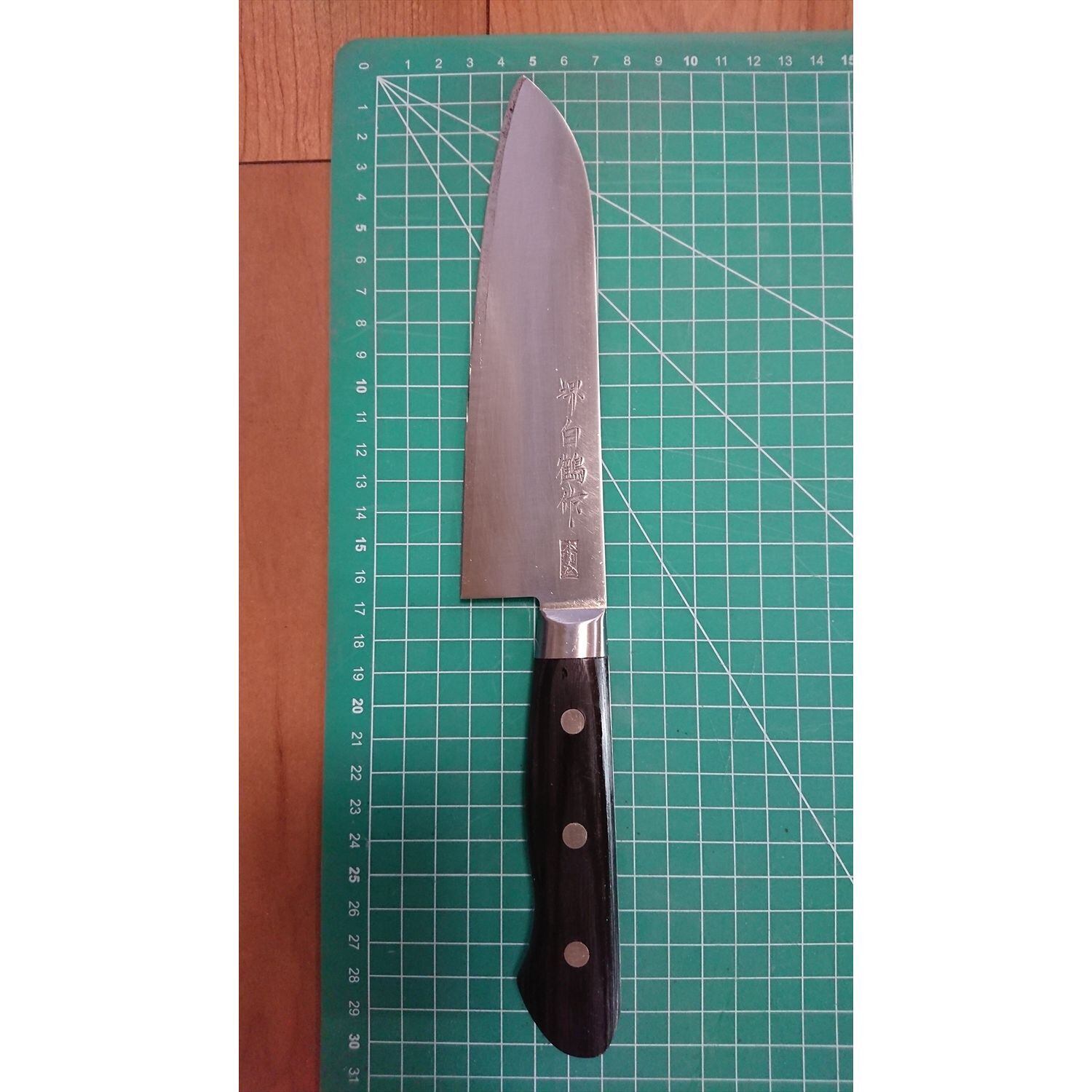 中古o1728 切れる三徳包丁 堺白鶴作 刃165mm+2特典