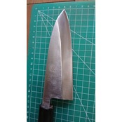 1. o1674/銘:鍛造/出刃包丁(片刃 右利き用)/刃長:150/峰厚 アゴ上:7.6/重量:270/作り:鋼?/他: