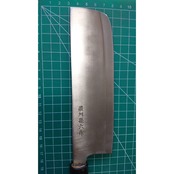 1. o1594/銘:濃州孫六作/菜切包丁(両刃 右利き・左利き兼用)/刃長:170/峰厚 アゴ上:1.5/重量:121/作り:鋼?/他:柄は当社にて新品と交換済み
