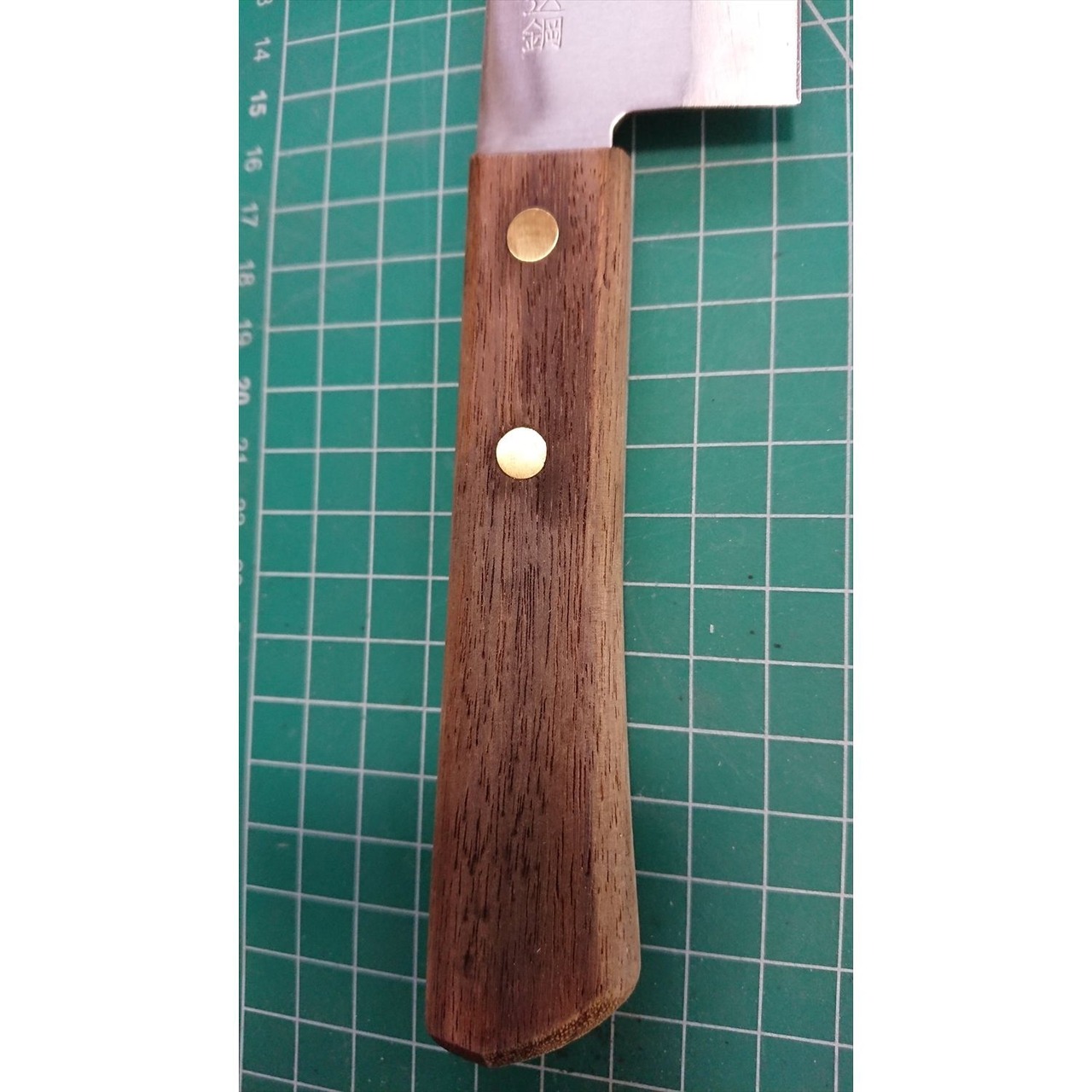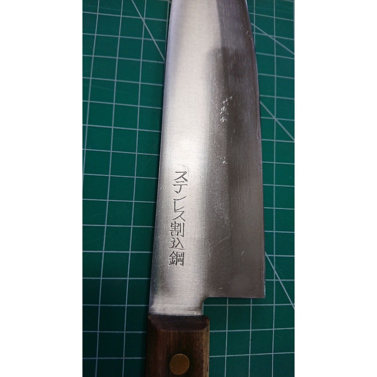 1. o1617/銘:銘?/三徳包丁(両刃 右利き・左利き兼用)/刃長:165/峰厚 アゴ上:1.4/重量:98/作り:ステンレス割込鋼(鋼をステンレスでサンド)/他: