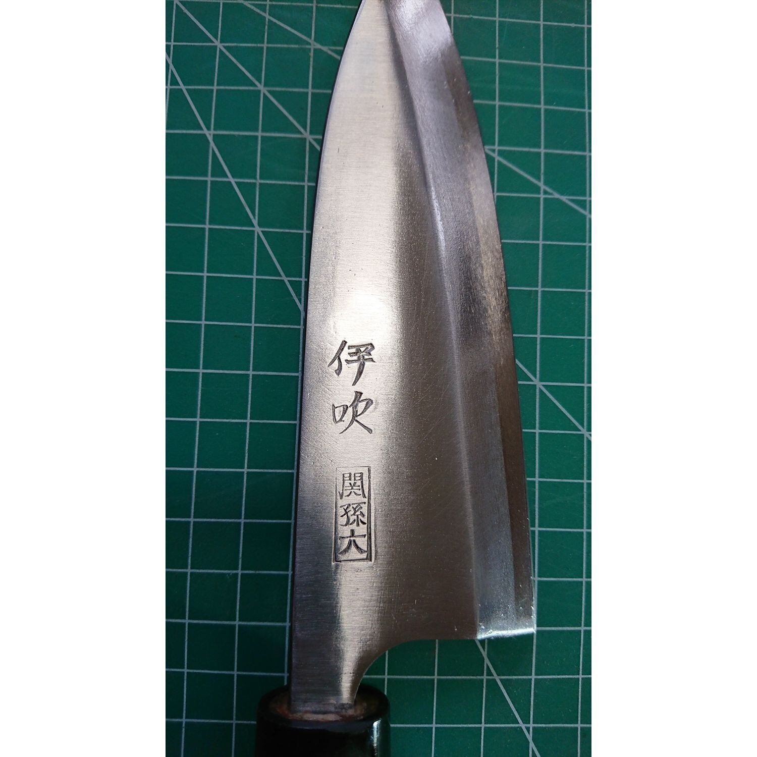 1. o1828/銘:関孫六 伊吹/出刃包丁(片刃 右利き用)/刃長:150/峰厚 アゴ上:6.3/重量:248/作り:鋼/他: