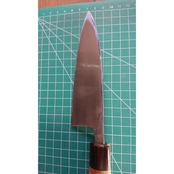 1. o1883/銘:正本○秀/身卸出刃包丁(片刃 右利き用)/刃長:140/峰厚 アゴ上:6.1/重量:144/作り:鋼 水牛柄/他:口輪に一部欠けが若干あったが当社にて補修済み