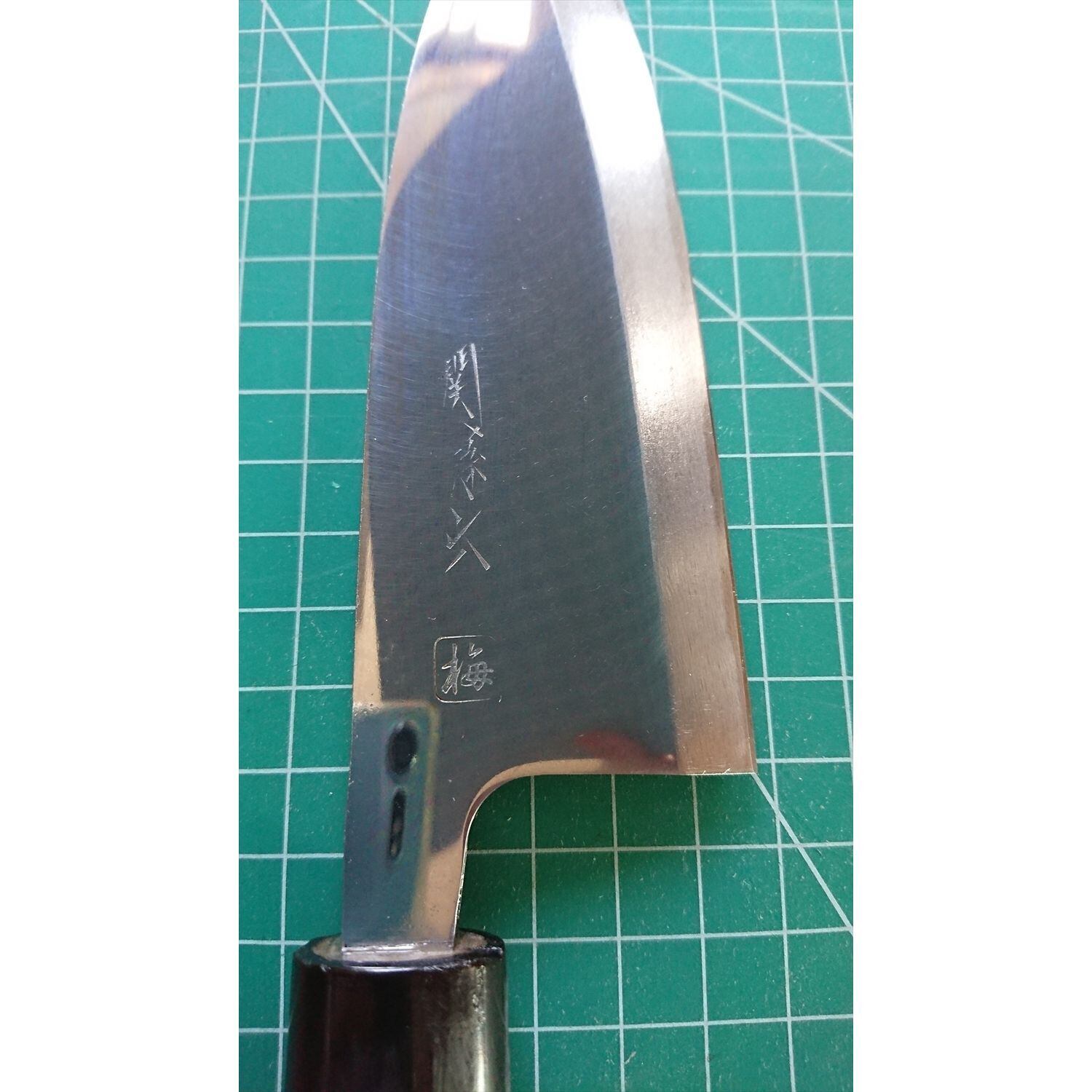 1. o1871/銘:関孫六 梅/出刃包丁(片刃 右利き用)/刃長:150/峰厚 アゴ上:7.9/重量:230/作り:鋼/他: