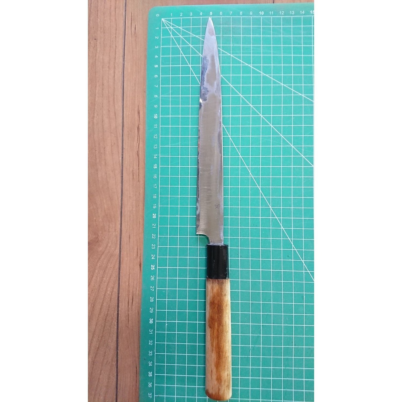 1. o1889/銘:兼安/刺身包丁(片刃 右利き用)/刃長:220/峰厚 アゴ上:3/重量:123/作り:鋼/他: