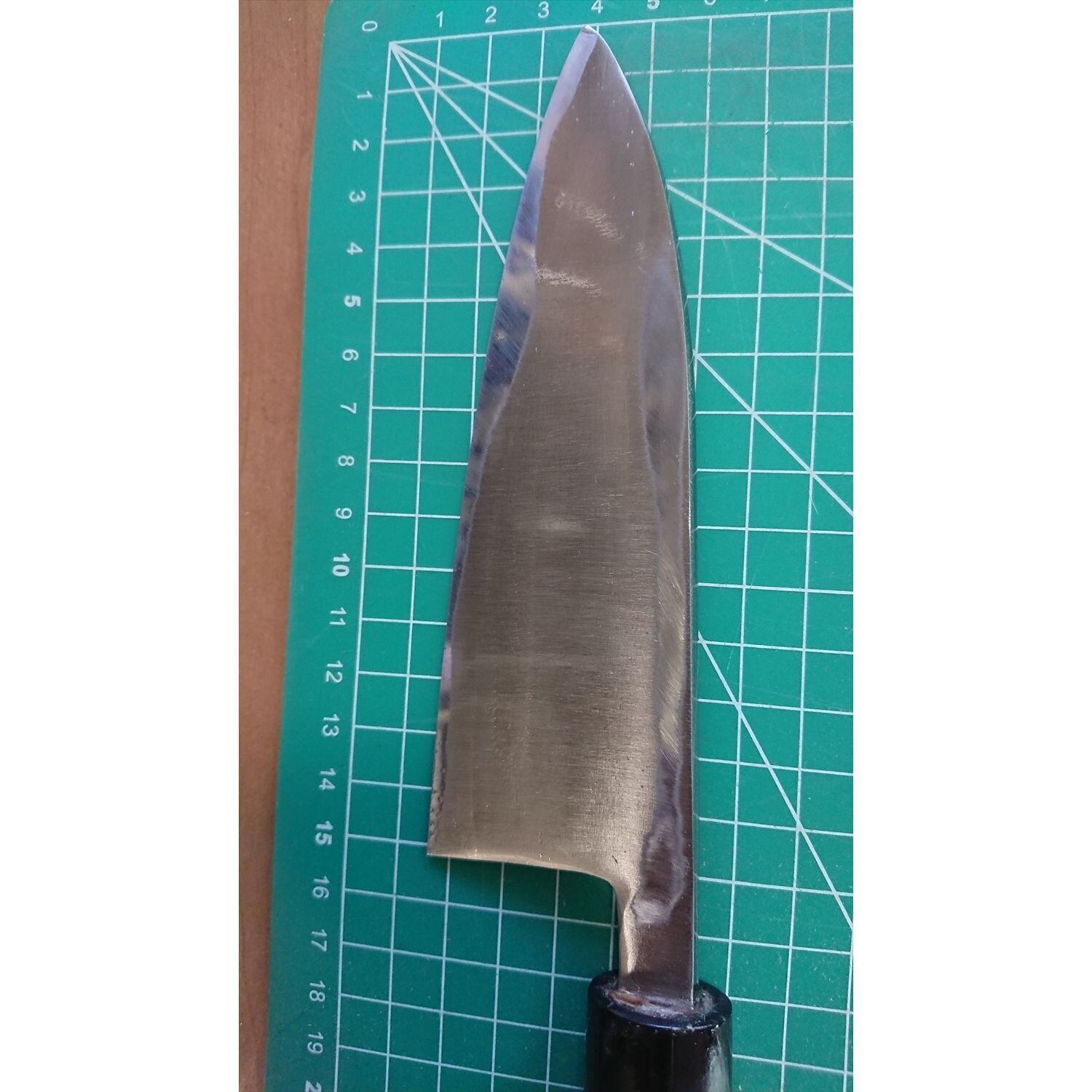 1. o1861/銘:銘?/出刃包丁(片刃 右利き用)/刃長:150/峰厚 アゴ上:4.9/重量:215/作り:鋼/他: