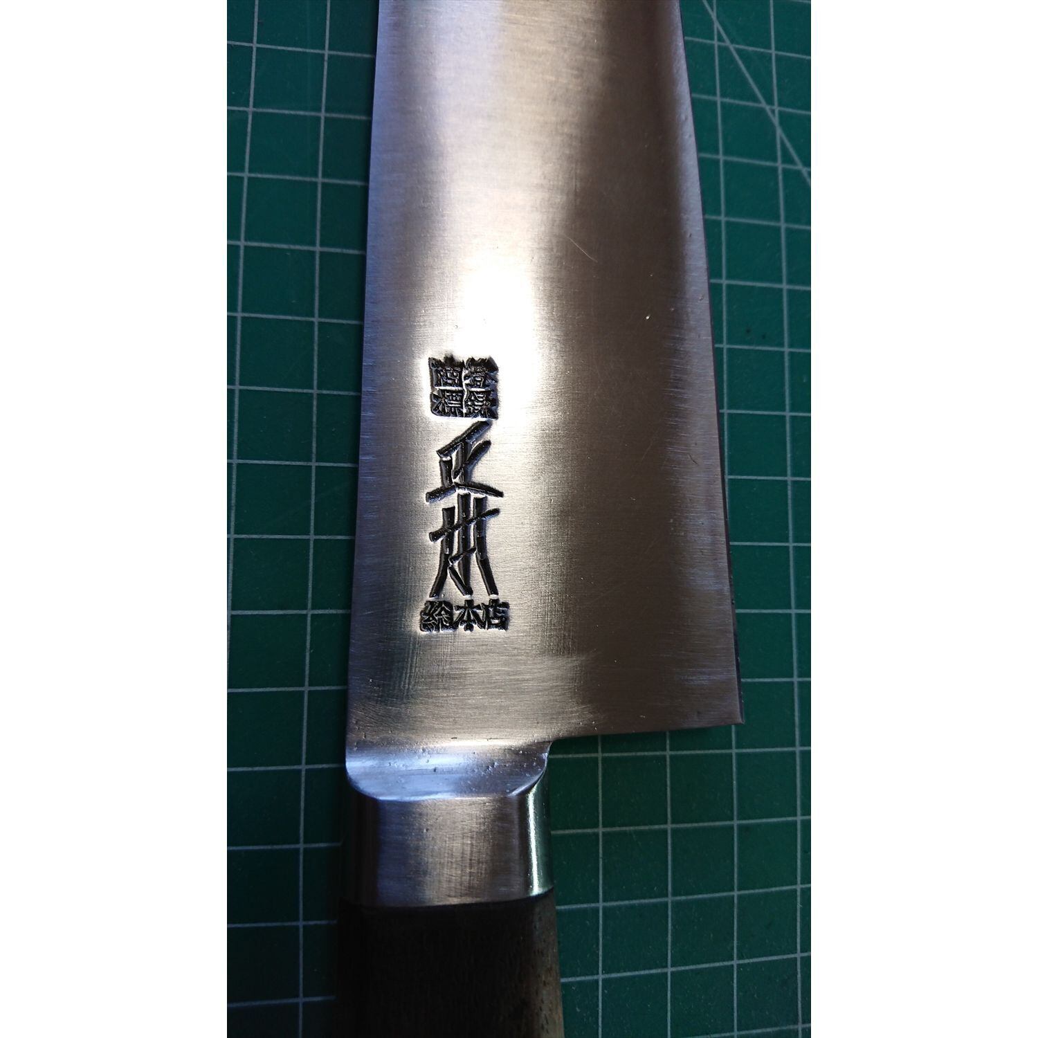 1. o1955/銘:正本総本店/牛刀(両刃 右利き・左利き兼用)/刃長:270/峰厚 アゴ上:2/重量:241/作り:鋼 最上/他: