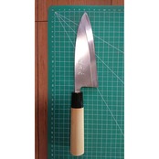 1. o1981/銘:関孫六/出刃包丁(片刃 右利き用)/刃長:155/峰厚 アゴ上:7.7/重量:246/作り:鋼/他: