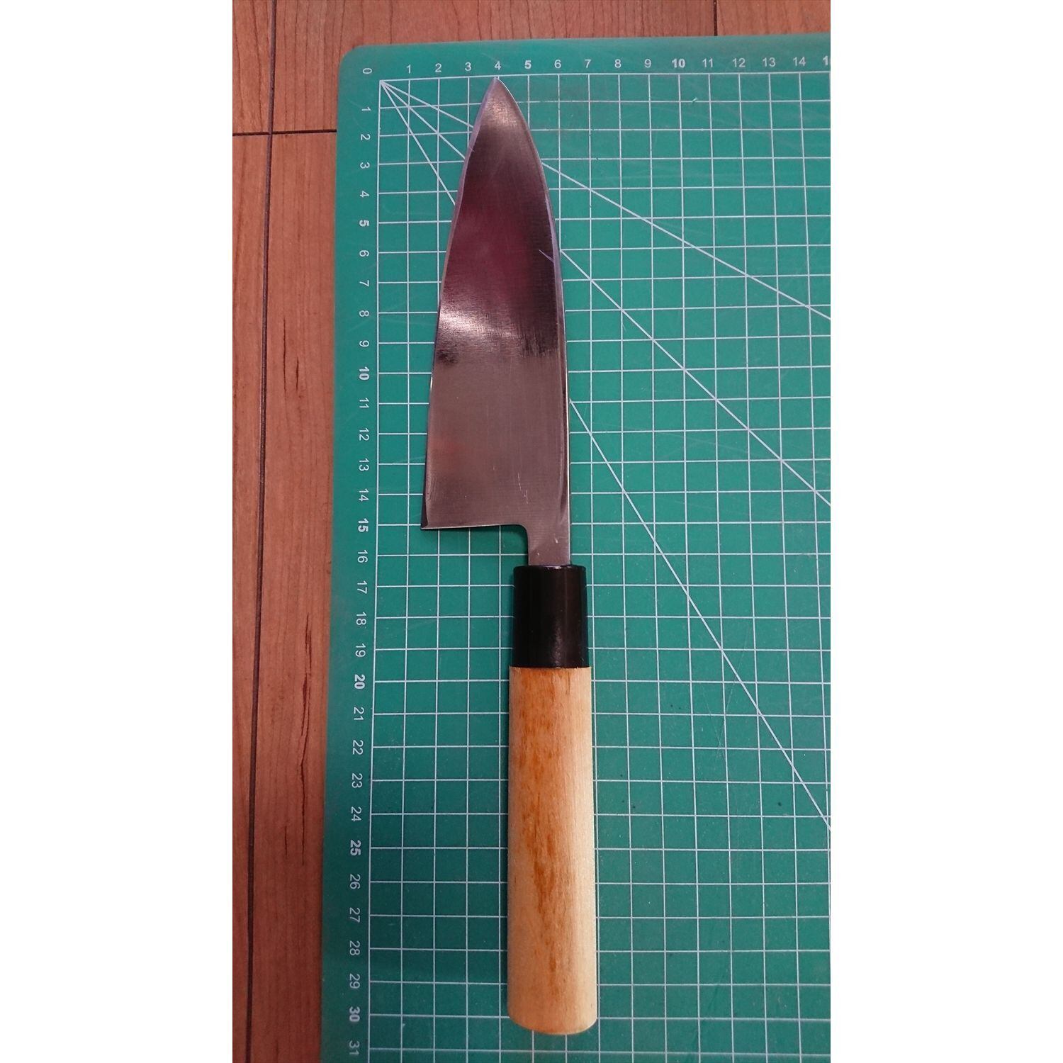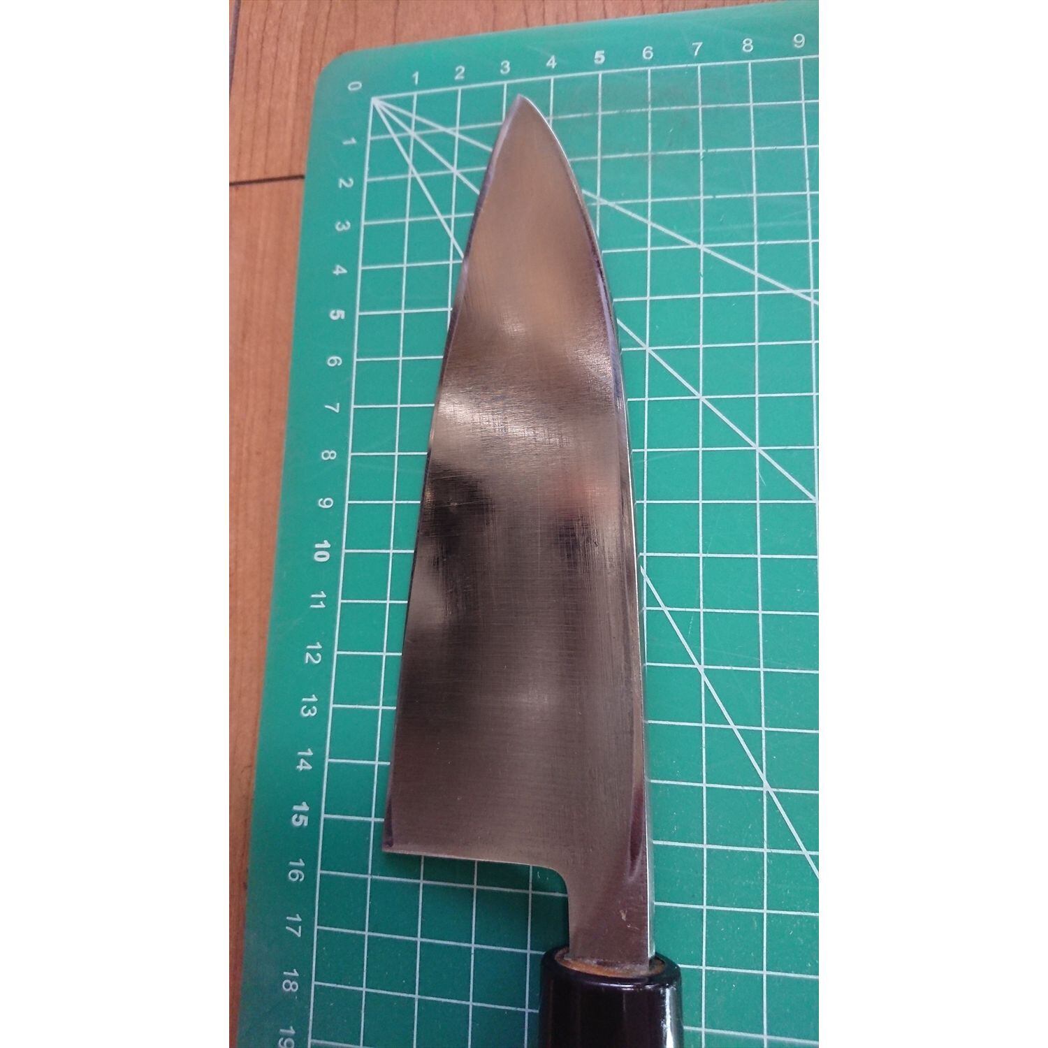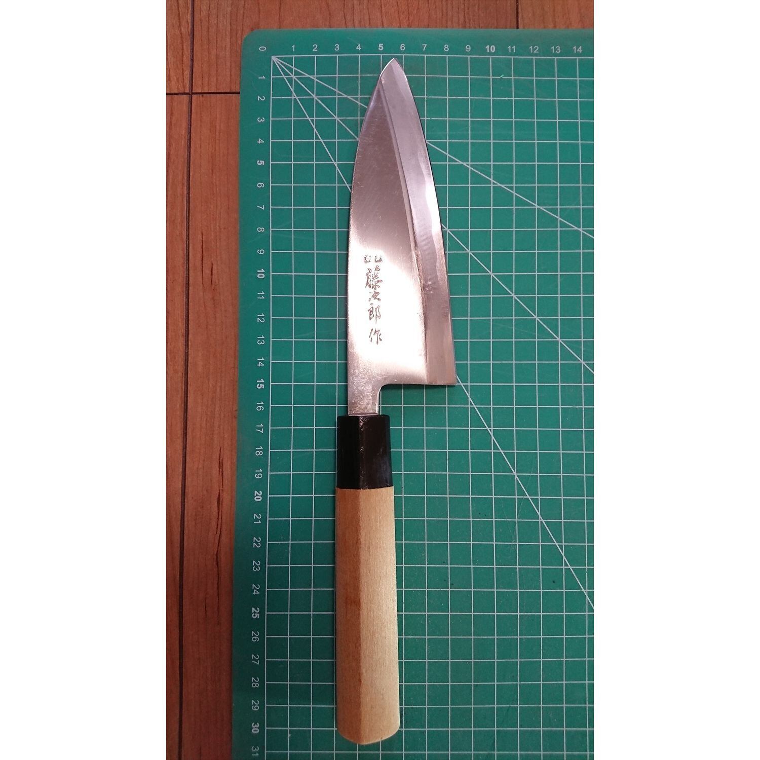 1. o1998/銘:藤次郎/相出刃包丁(片刃 右利き用)/刃長:150/峰厚 アゴ上:3.4/重量:149/作り:鋼/他: