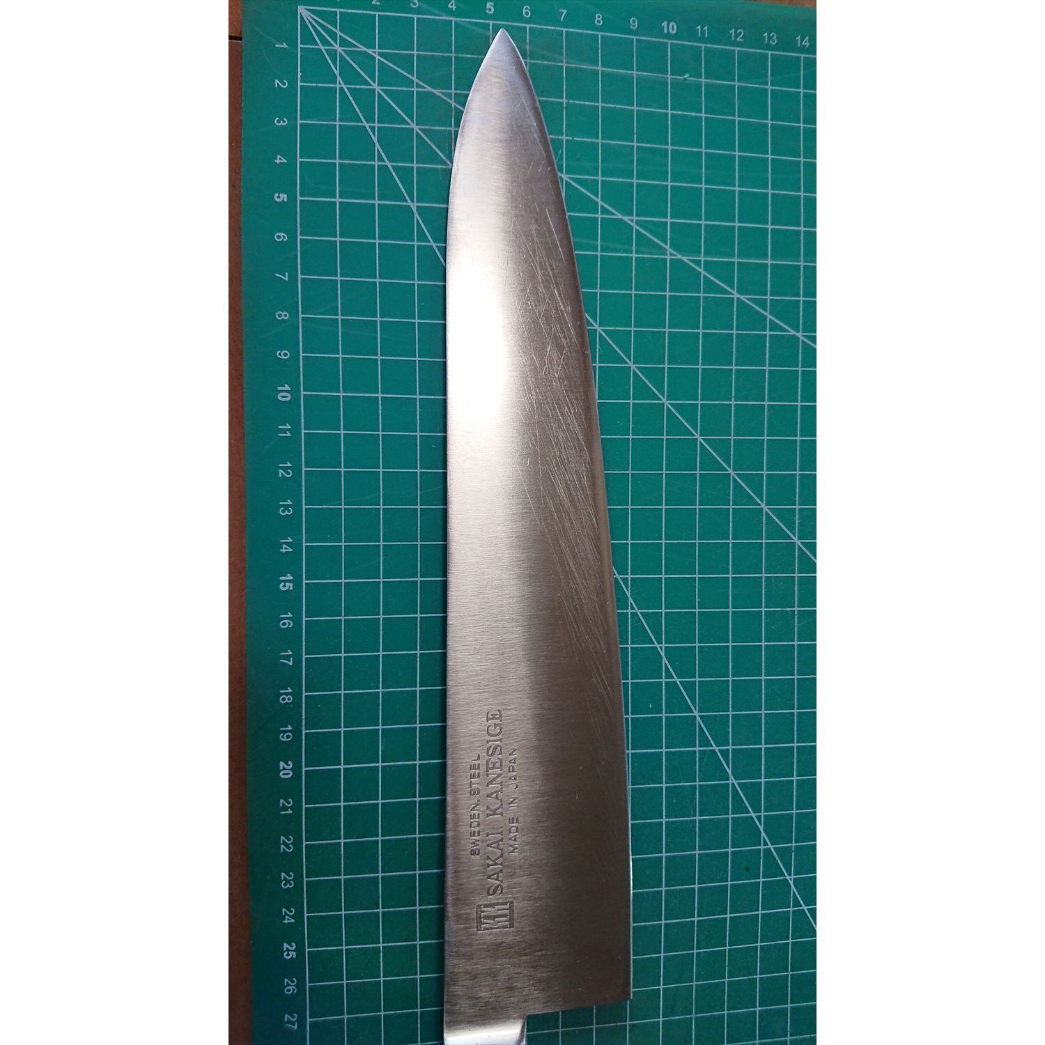 1. o2042/銘:SAKAI KANESIGE/牛刀(両刃 右利き・左利き兼用)/刃長:270/峰厚 アゴ上:2.4/重量:304/作り:SWEDEN.STEEL/他: