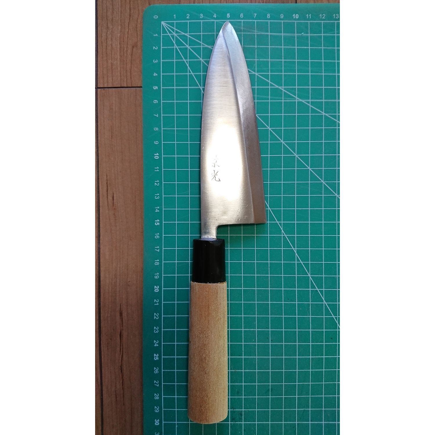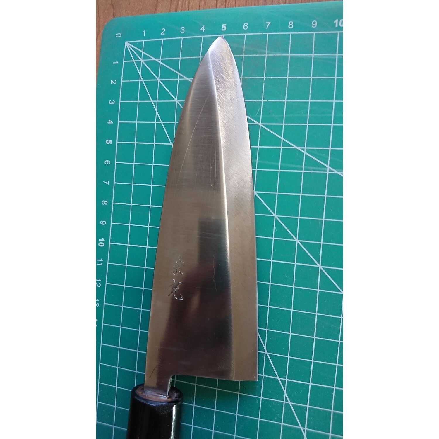 1. o1985/銘:景光/相出刃包丁(両刃 約 左1:右9 右利き用)/刃長:150/峰厚 アゴ上:4.1/重量:216/作り:鋼/他: