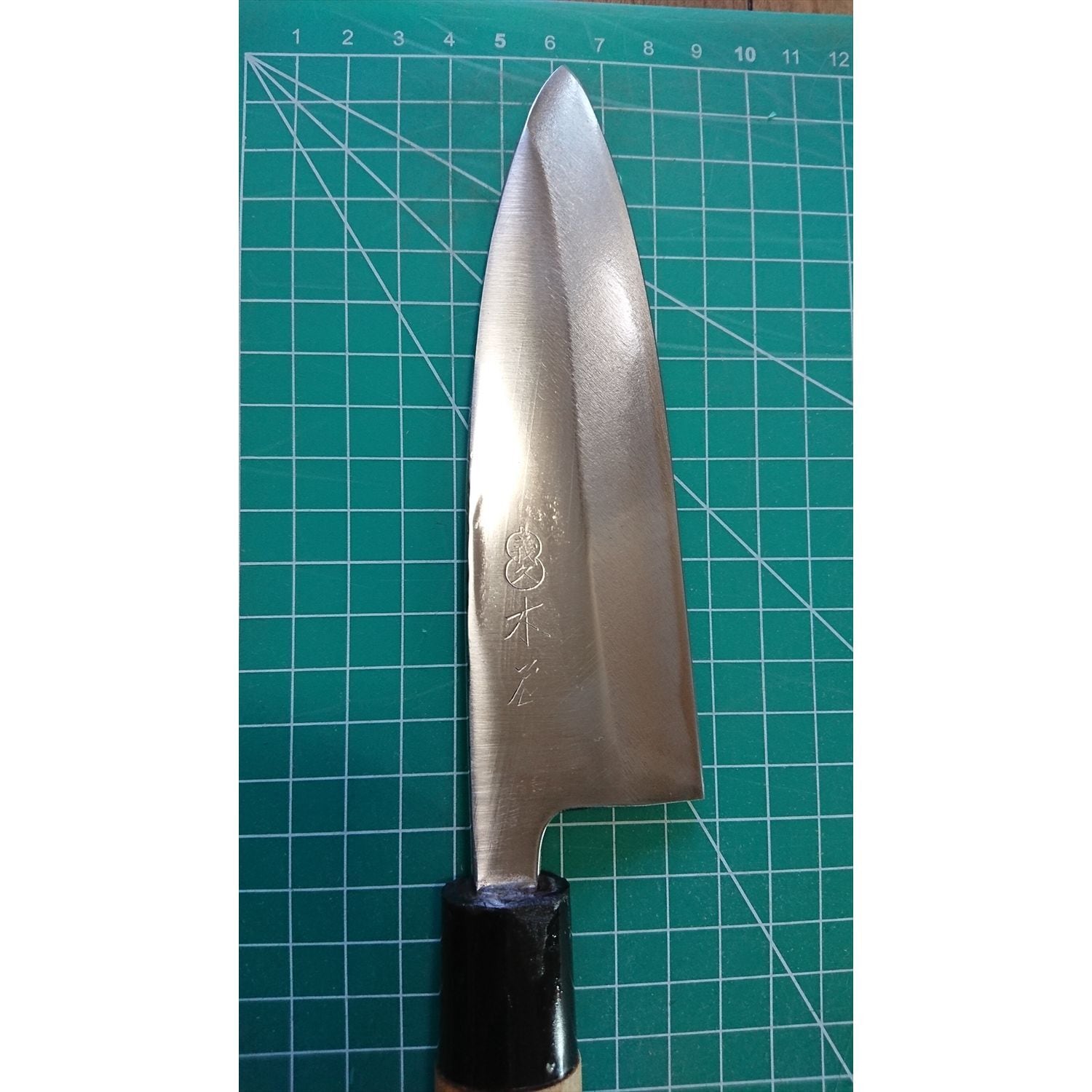 1. o2001/銘:木屋 義久/出刃包丁(片刃 右利き用)/刃長:145/峰厚 アゴ上:6.8/重量:211/作り:白鋼/他: