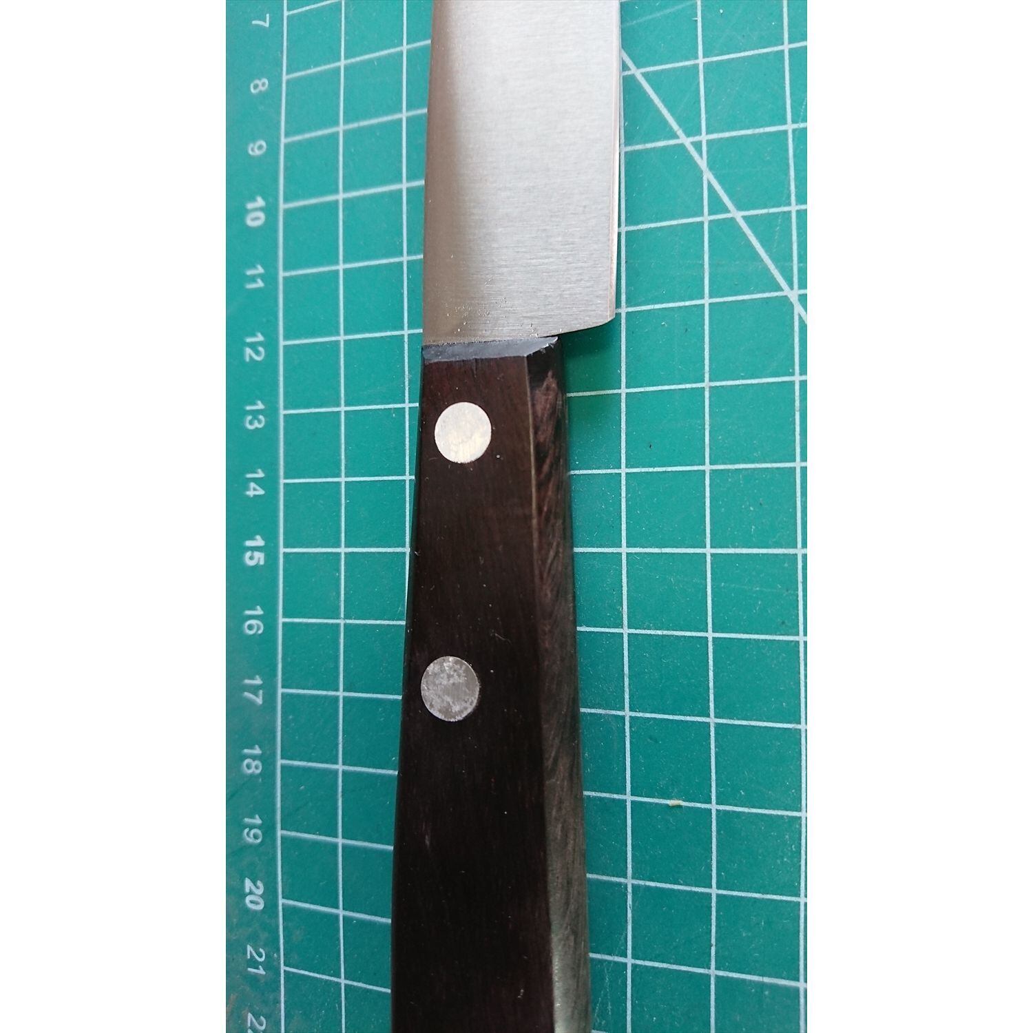 1. o1899/銘:ヘンケルス/ペティナイフ(両刃 右利き・左利き兼用)/刃長:120/峰厚 アゴ上:2/重量:63/作り:ステンレス/他: