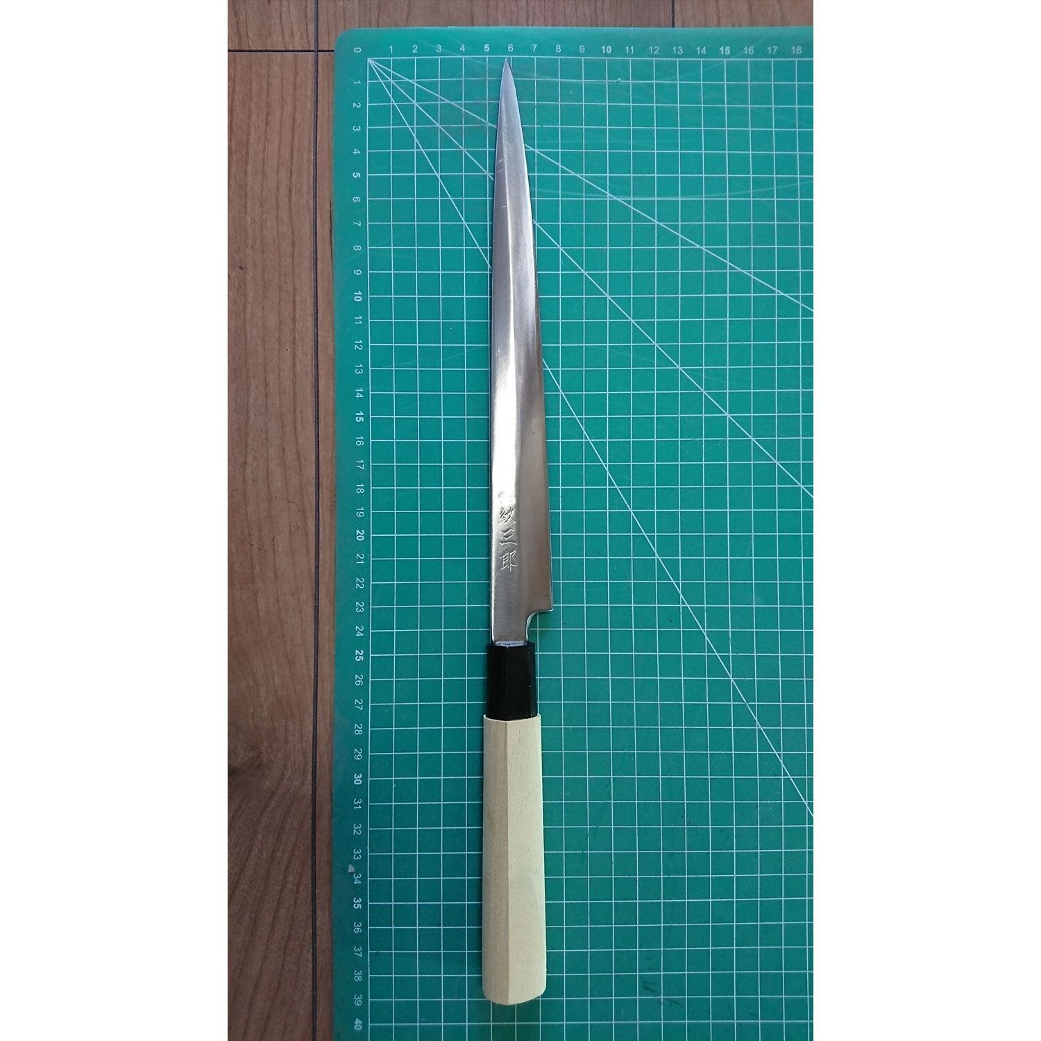 中古o2078 切れる刺身包丁 紋三郎 刃235mm+2特典
