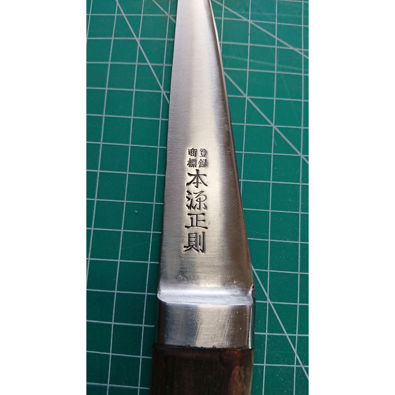 1. o2061/銘:本源正則/骨スキ包丁(両刃 約 左1:右9 右利き用)/刃長:135/峰厚 アゴ上:2.6/重量:151/作り:鋼/他: