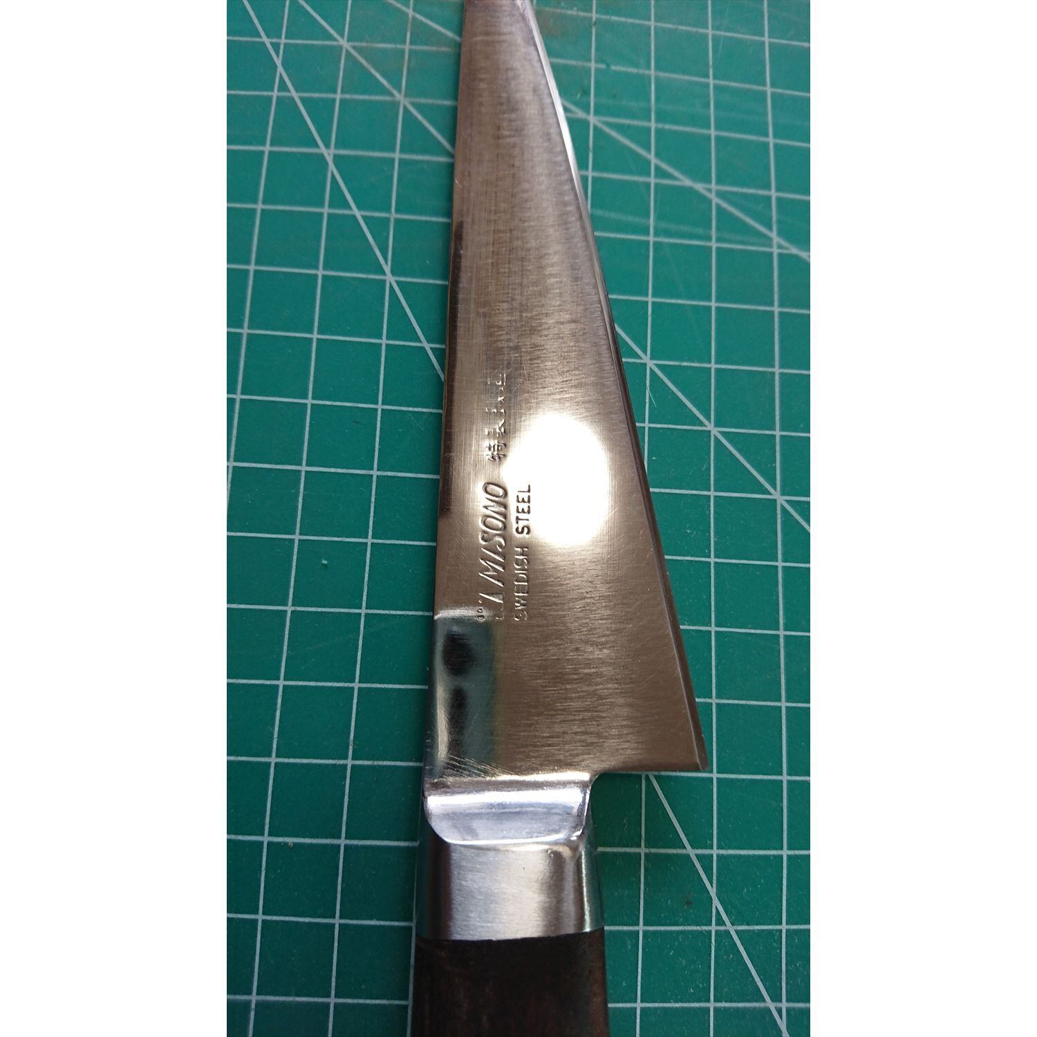 1. o2104/銘:Misono(ミソノ)/骨スキ包丁(両刃 約 左1:右9 右利き用)/刃長:140/峰厚 アゴ上:2.2/重量:151/作り:特製鍛造 SWEDISH STEEL/他:ヒラ・ウラを反鏡面にしました