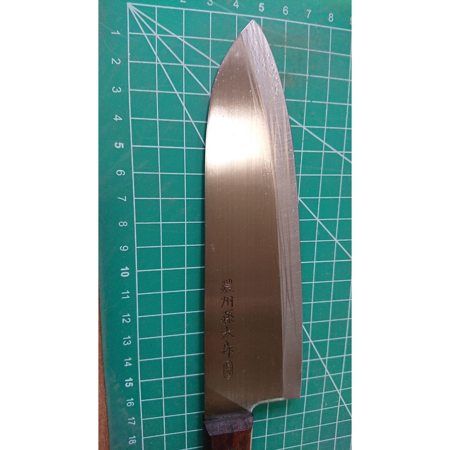 1. o2228/銘:濃州孫六/三徳包丁(両刃 右利き・左利き兼用)/刃長:165/峰厚 アゴ上:1.4/重量:107/作り:ステンレス?/他: