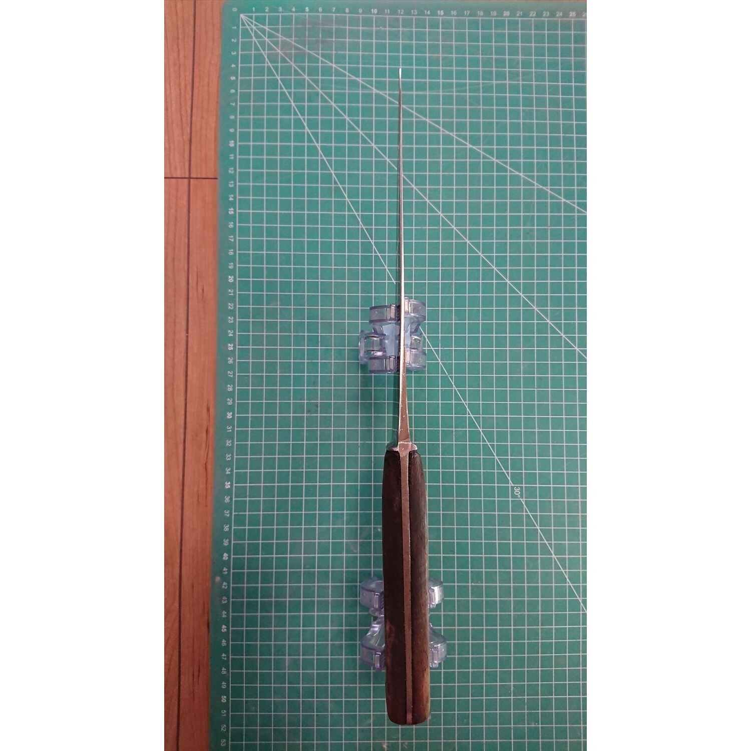1. o2124/銘:銘?/牛刀(両刃 右利き・左利き兼用)/刃長:210/峰厚 アゴ上:6.1/重量:289/作り:鋼/他: