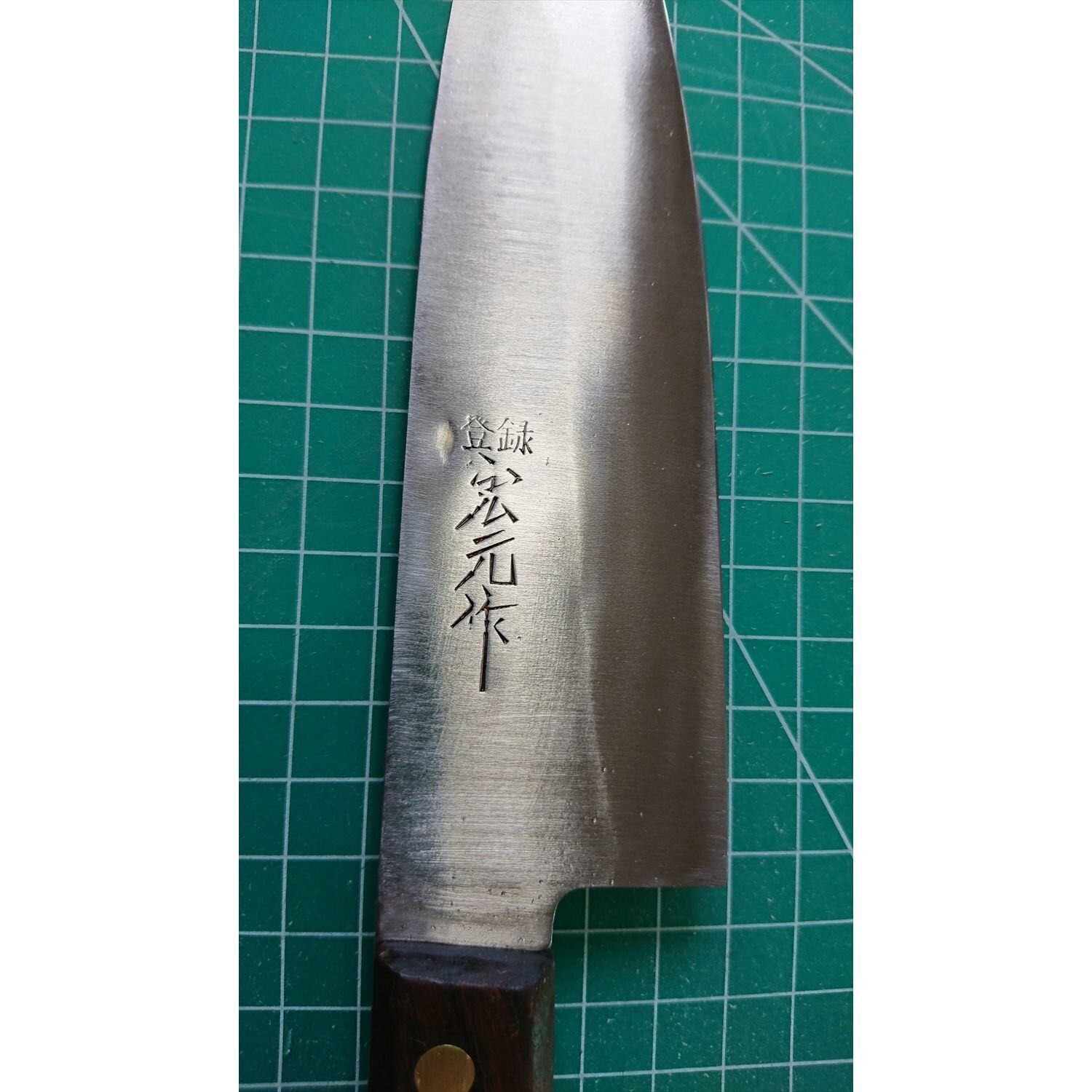 1. o2152/銘:宏元作/三徳包丁(両刃 右利き・左利き兼用)/刃長:170/峰厚 アゴ上:2.3/重量:119/作り:鋼/他: