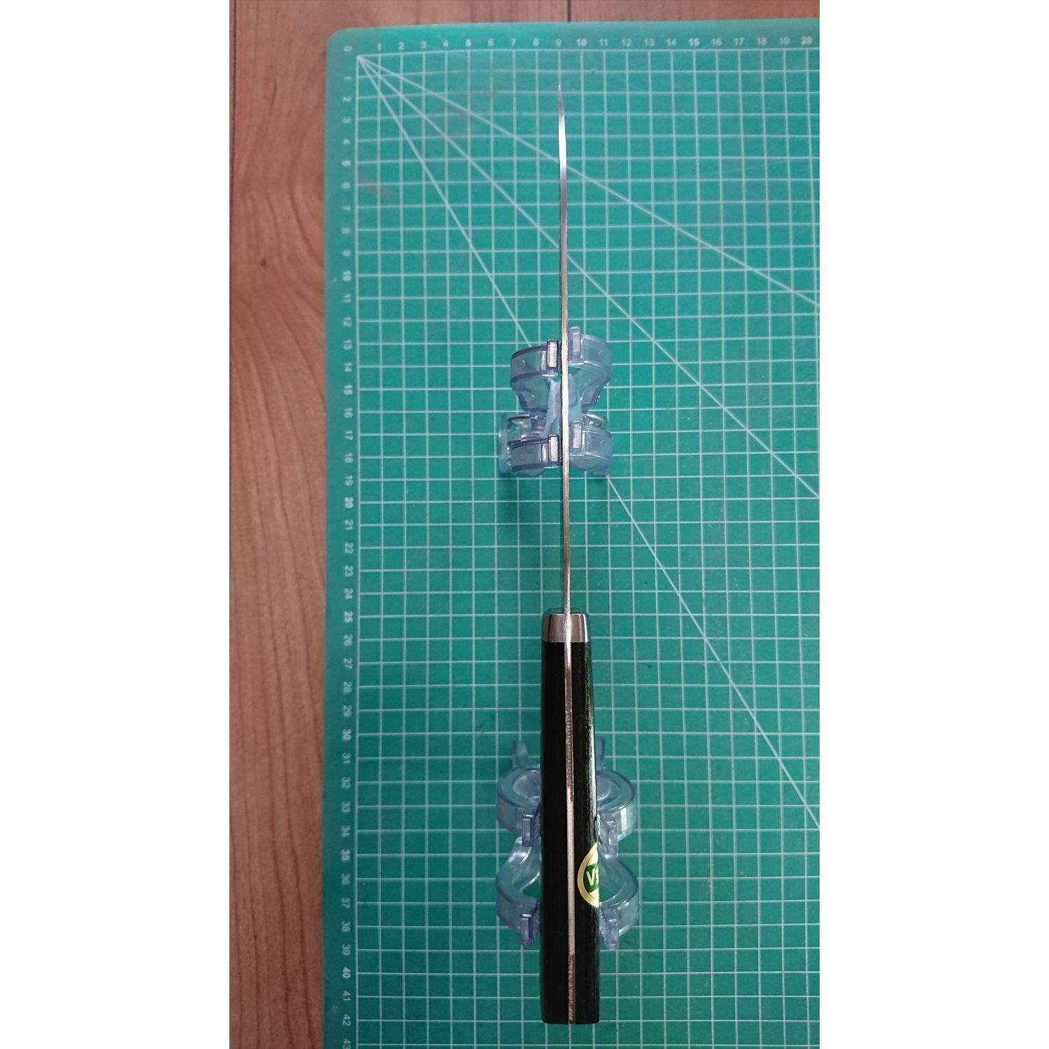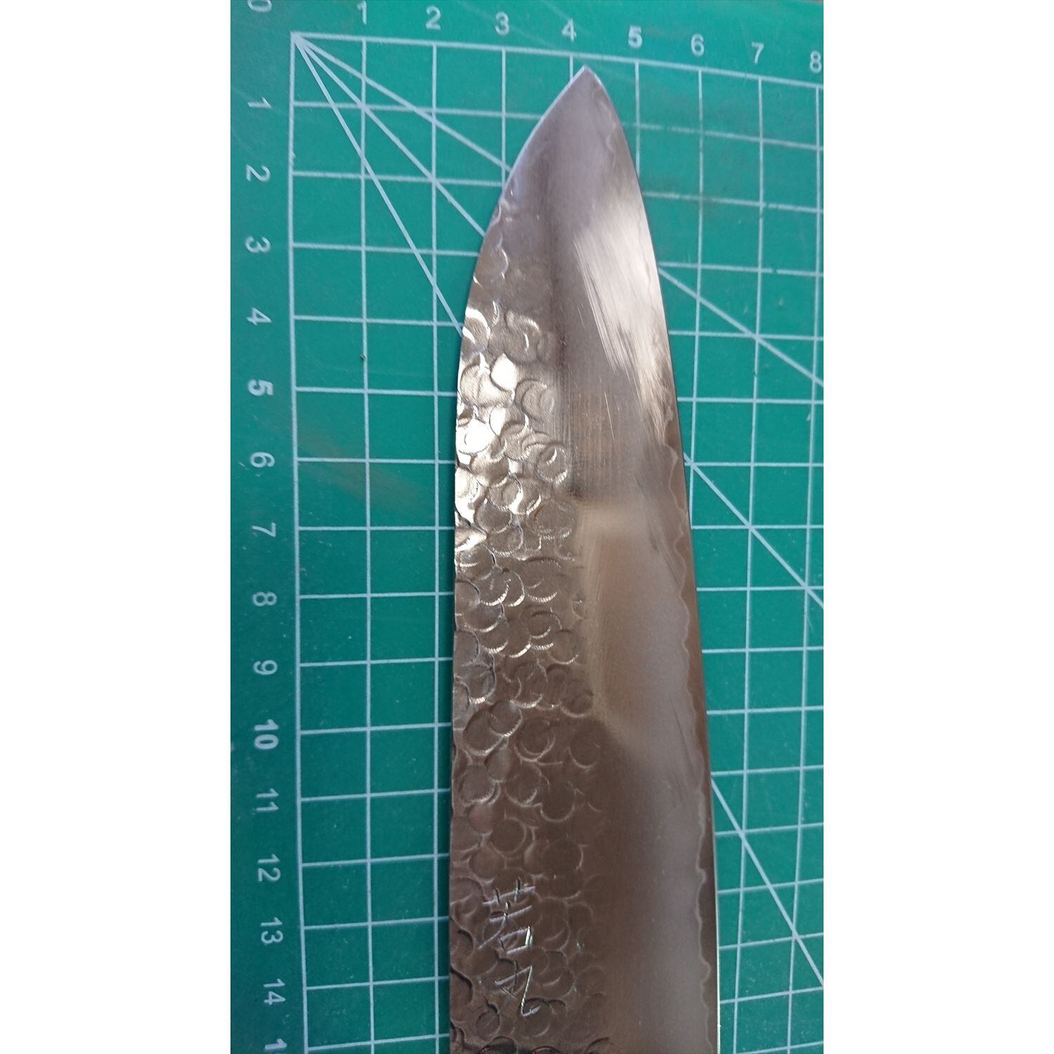 1. o2263/銘:若丸/三徳包丁(両刃 右利き・左利き兼用)/刃長:165/峰厚 アゴ上:1.7/重量:152/作り:槌目VG10割込鋼(VG10鋼をステンレスでサンド)/他: