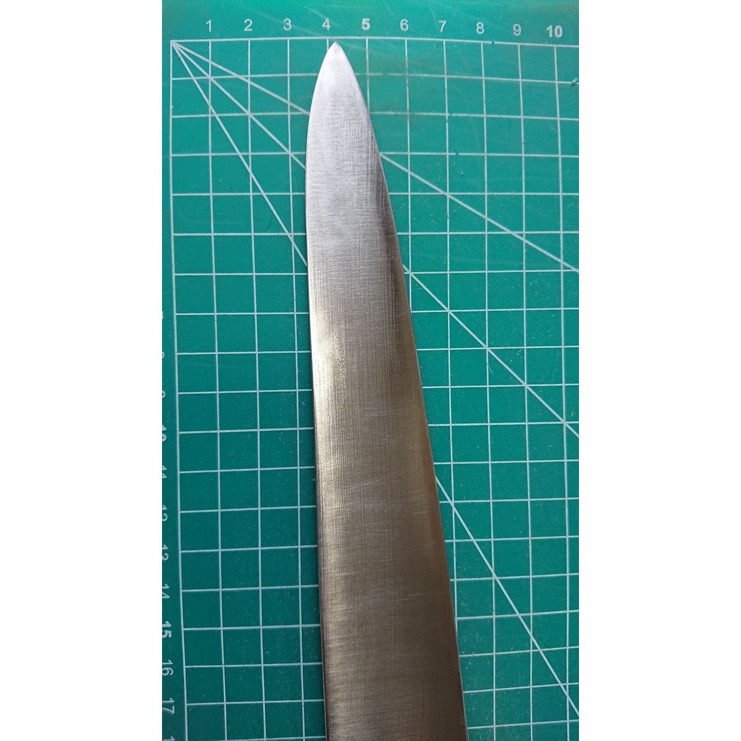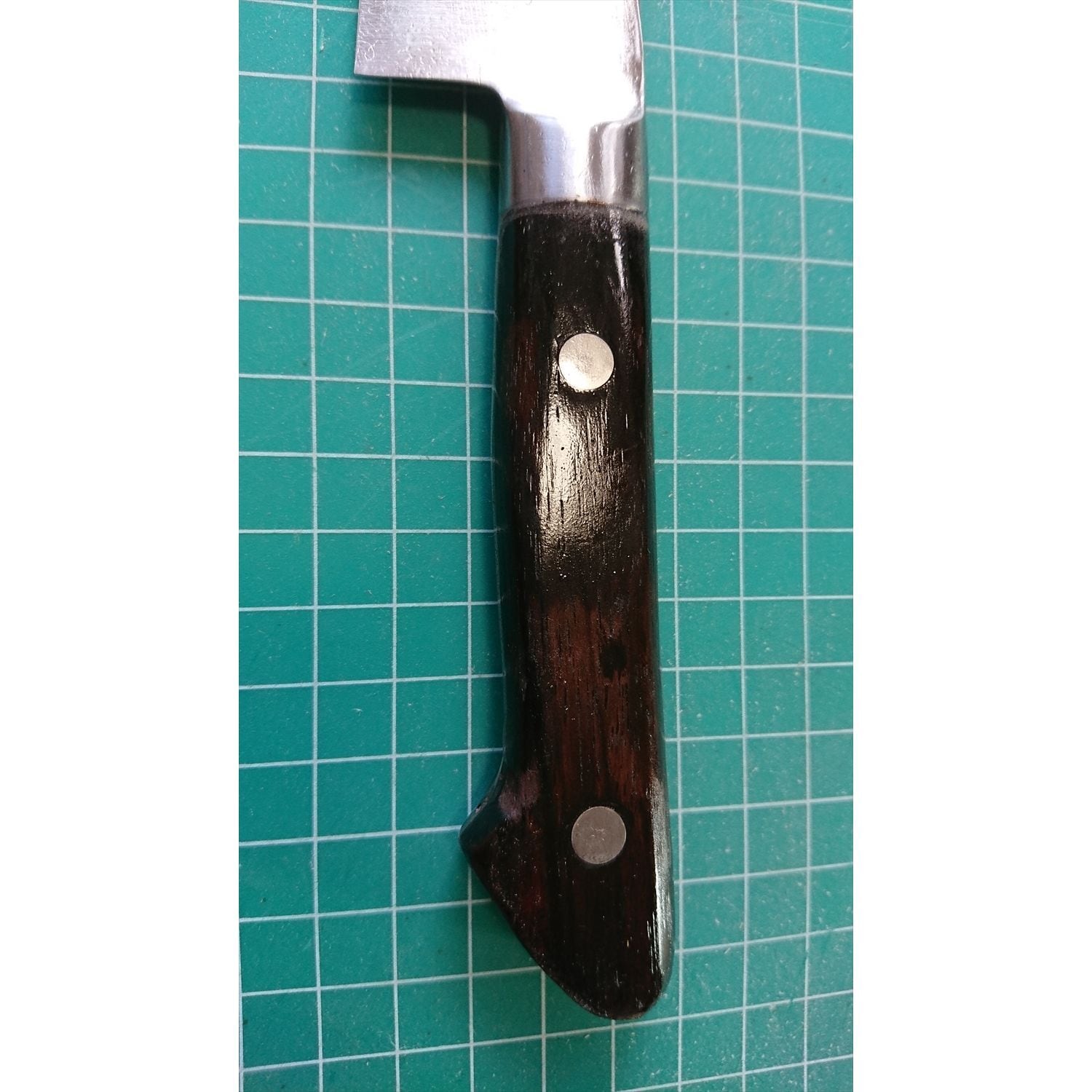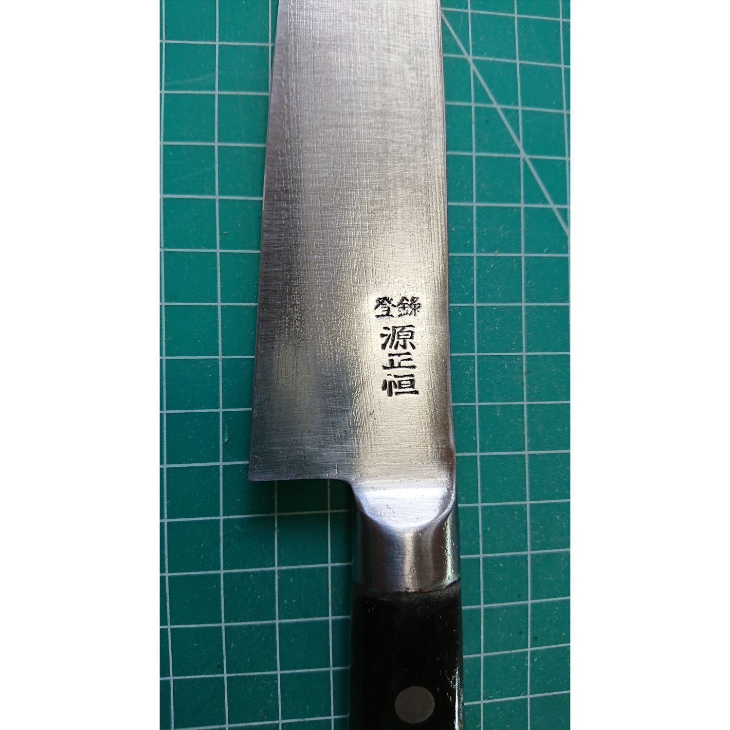 1. o2327/銘:源正恒/牛刀(両刃 右利き・左利き兼用)/刃長:200/峰厚 アゴ上:1.5/重量:92/作り:鋼/他:柄はオーバーホール済み(リベットは新品交換済み)。ツバの根元から柄全体にかけて樹脂コーティング済み(防サビの為)