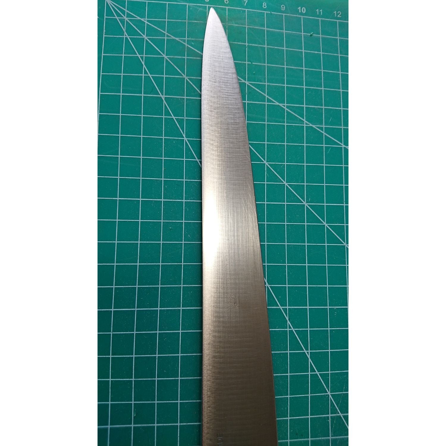 1. o2344/状態:中古/銘:Misono(ミソノ)/筋引包丁(両刃 左5:右5 右利き・左利き兼用)/刃長:270/峰厚 アゴ上:2.2/重量:168/作り:HANDMADE ステンレスモリブデン鋼/他: