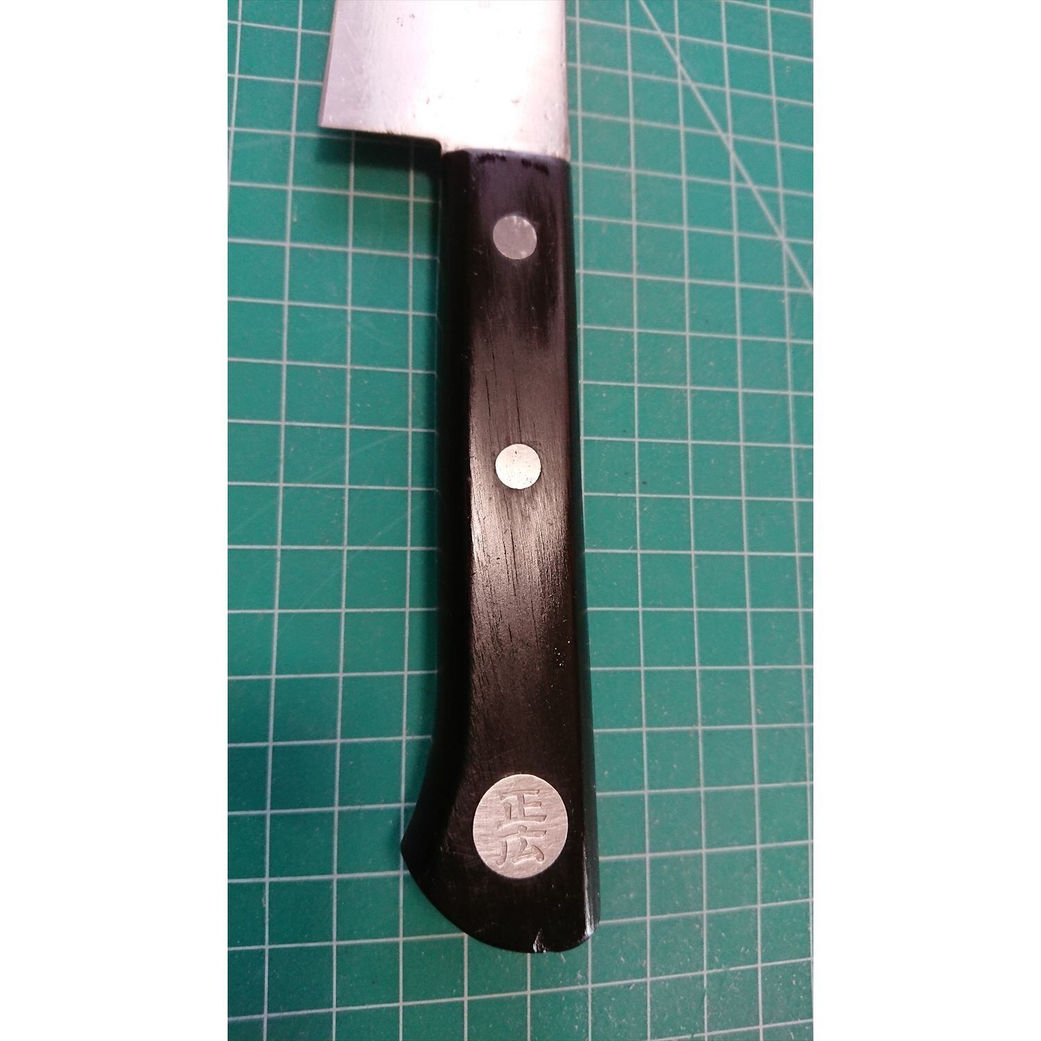 1. o2357/状態:中古/銘:正広 SILVER-109/牛刀(両刃 左5:右5 右利き・左利き兼用)/刃長:180/峰厚 アゴ上:1.7/重量:112/作り:HI-STAINLESS/他: