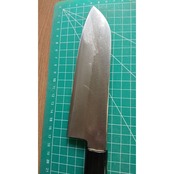 1. o2369/状態:中古/銘:堺武守/三徳包丁(両刃 左5:右5 右利き・左利き兼用)/刃長:165/峰厚 アゴ上:1.8/重量:97/作り:鋼/他:
