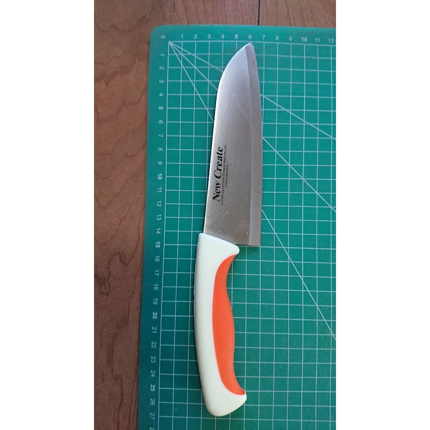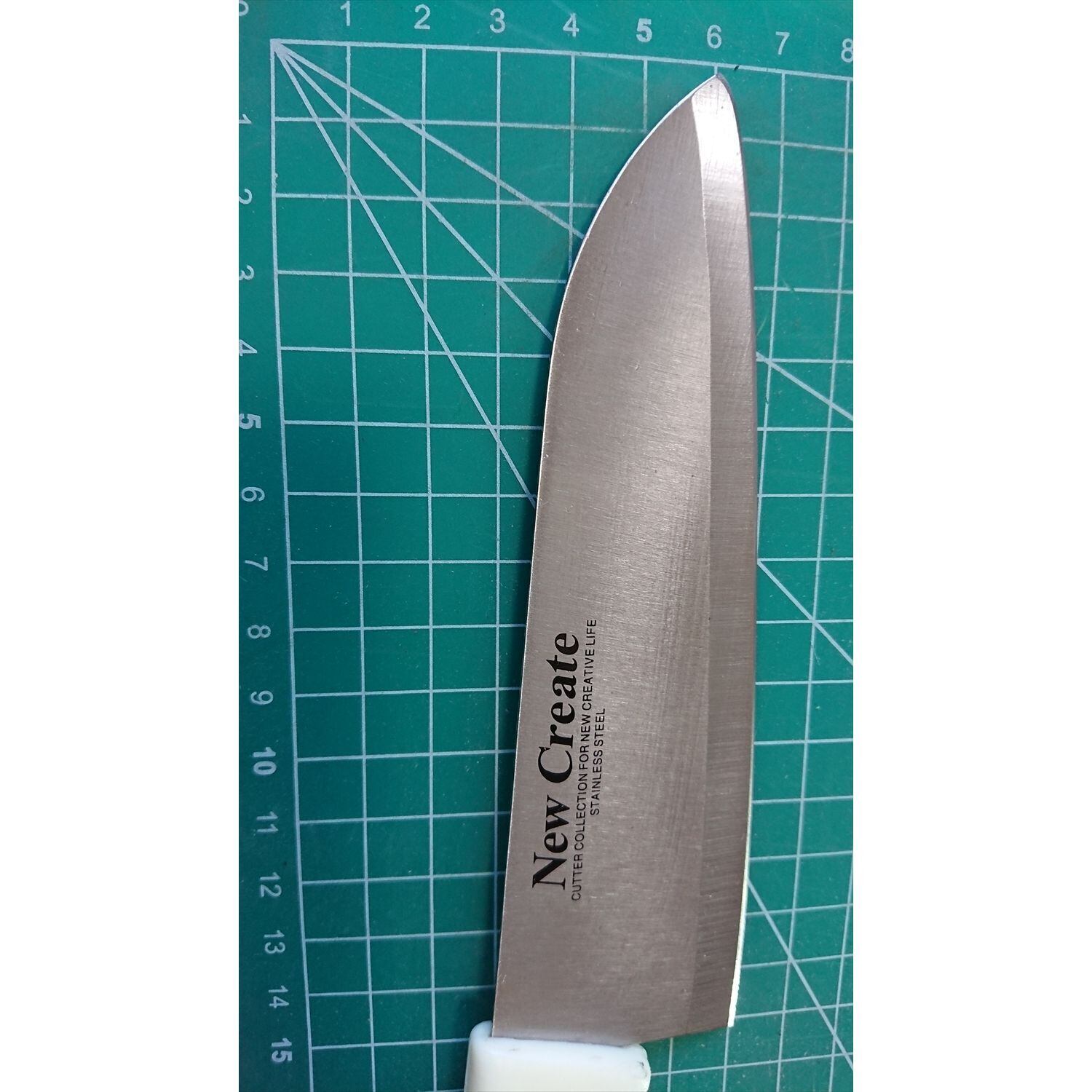 1. o2441/状態:中古/銘:New Create/三徳包丁(両刃 左5:右5 右利き・左利き兼用)/刃長:150/峰厚 アゴ上:1.1/重量:80/作り:ステンレス/他: