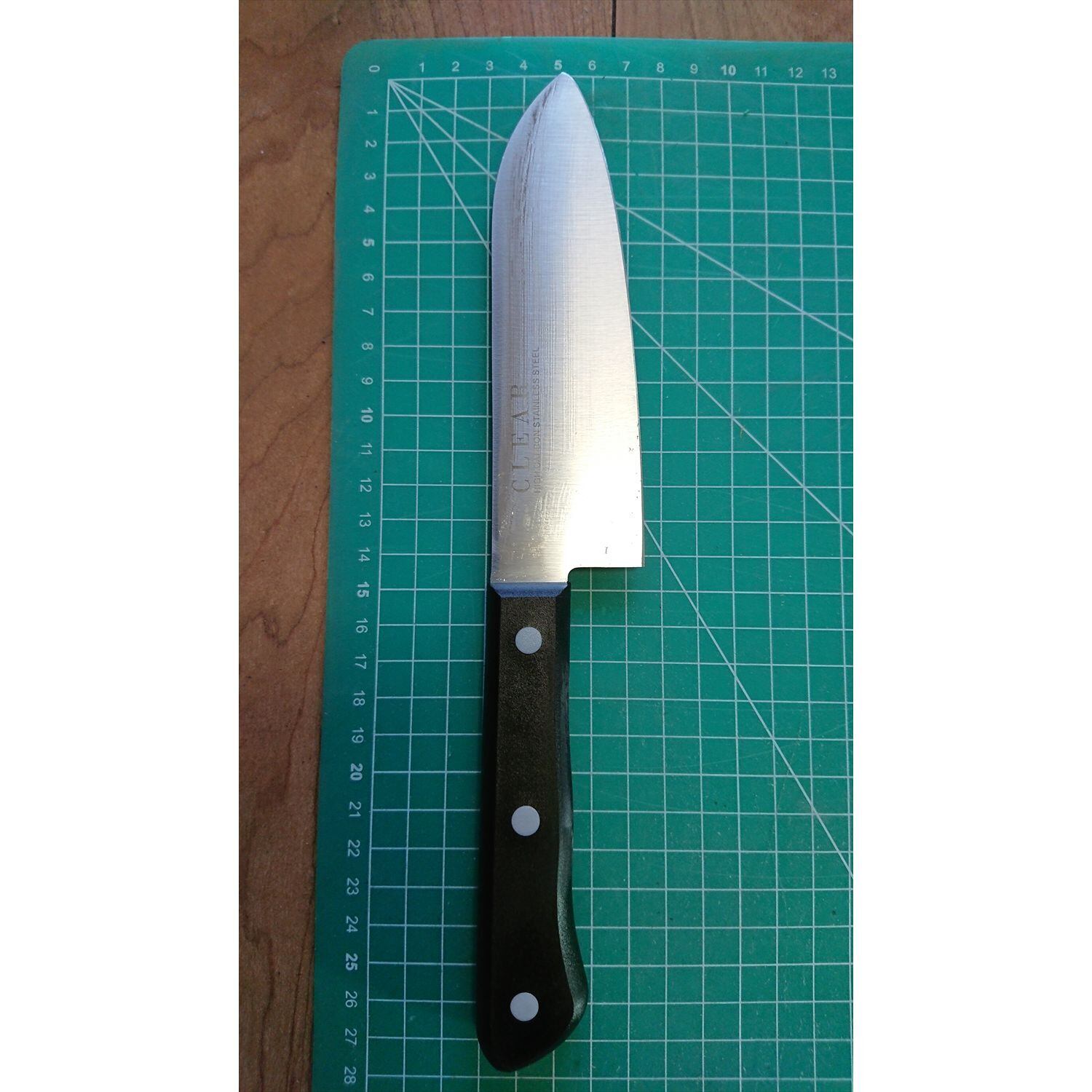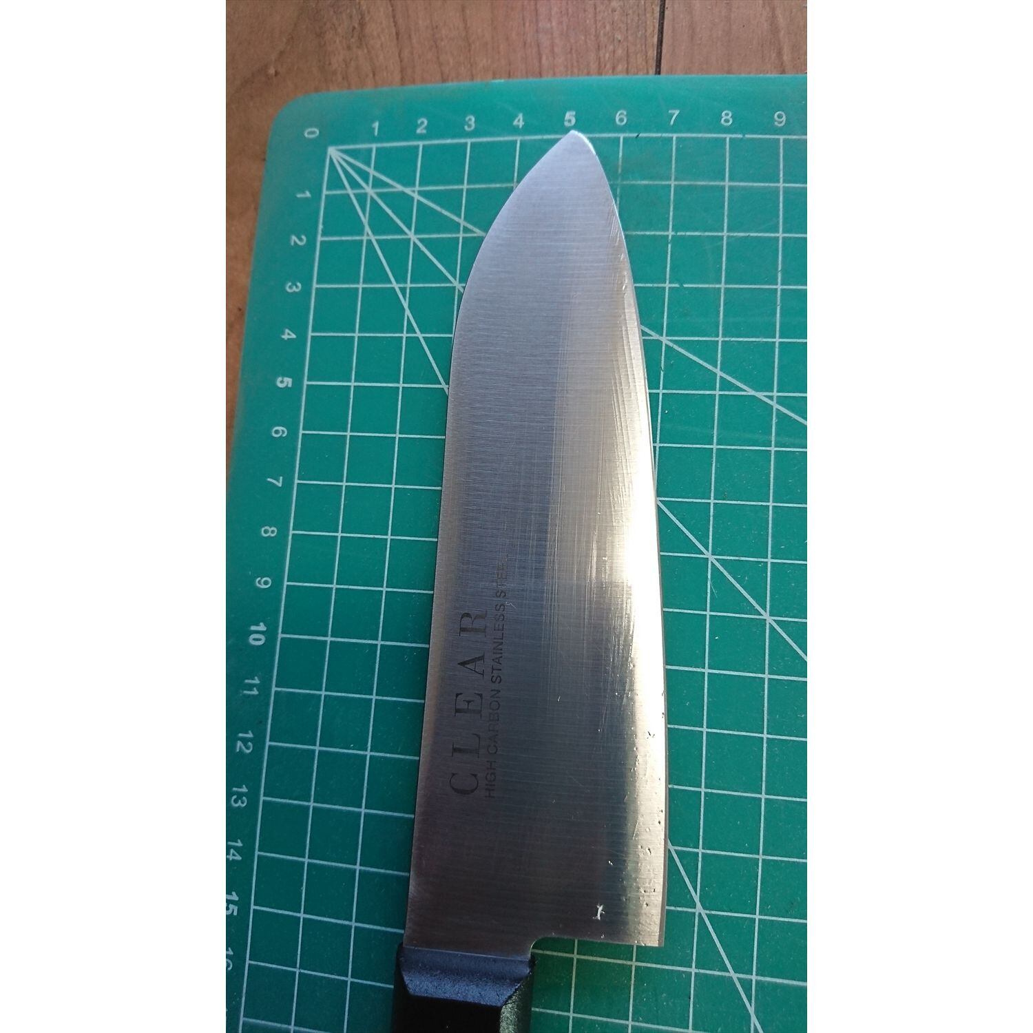 1. o2455/状態:中古/銘:CLEAR/三徳包丁(両刃 左5:右5 右利き・左利き兼用)/刃長:145/峰厚 アゴ上:1.3/重量:104/作り:High Carbon Stainless Steel/他:
