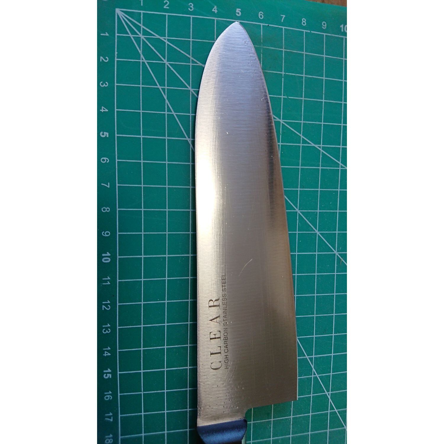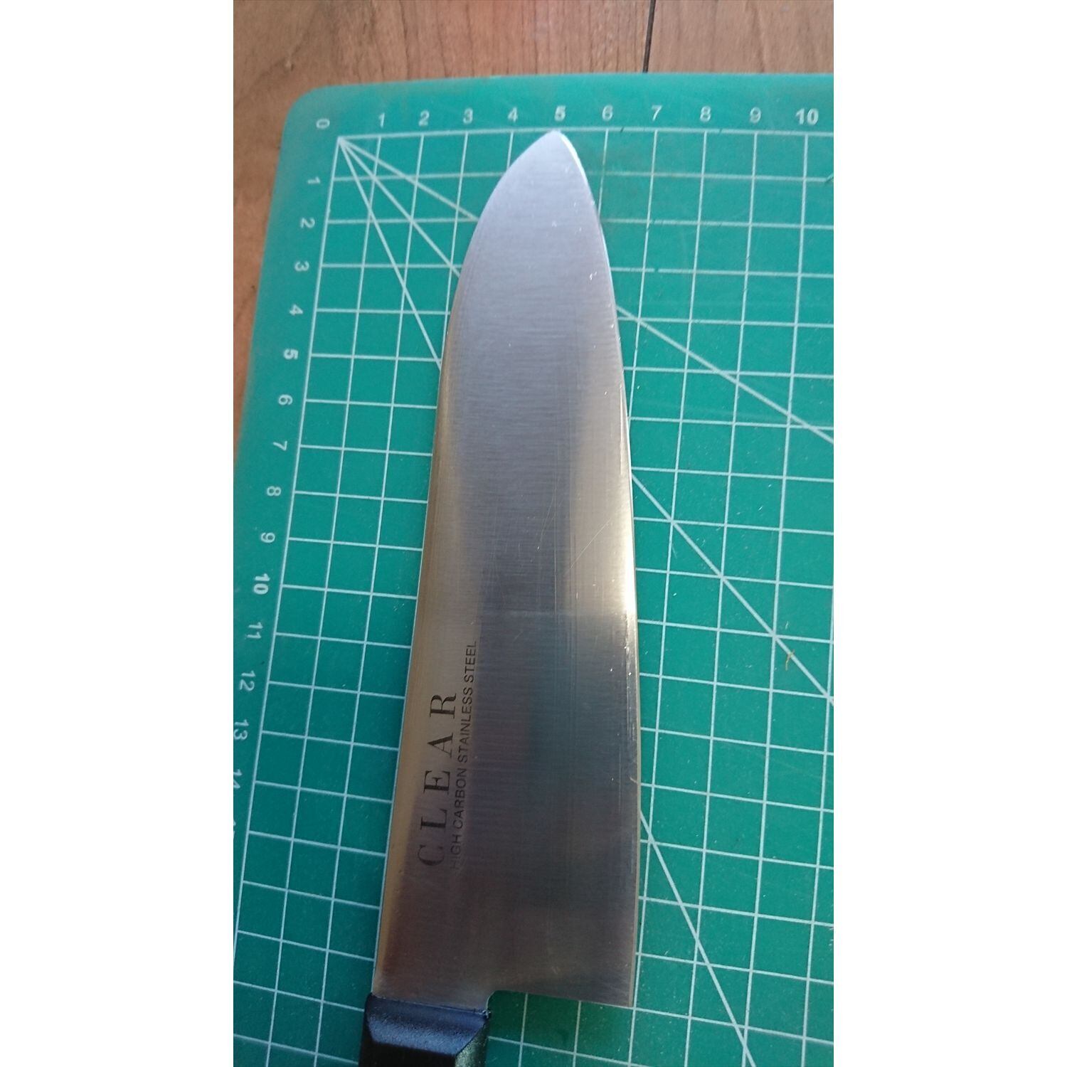 1. o2457/状態:中古/銘:CLEAR/三徳包丁(両刃 左5:右5 右利き・左利き兼用)/刃長:165/峰厚 アゴ上:1.3/重量:113/作り:High Carbon Stainless Steel/他: