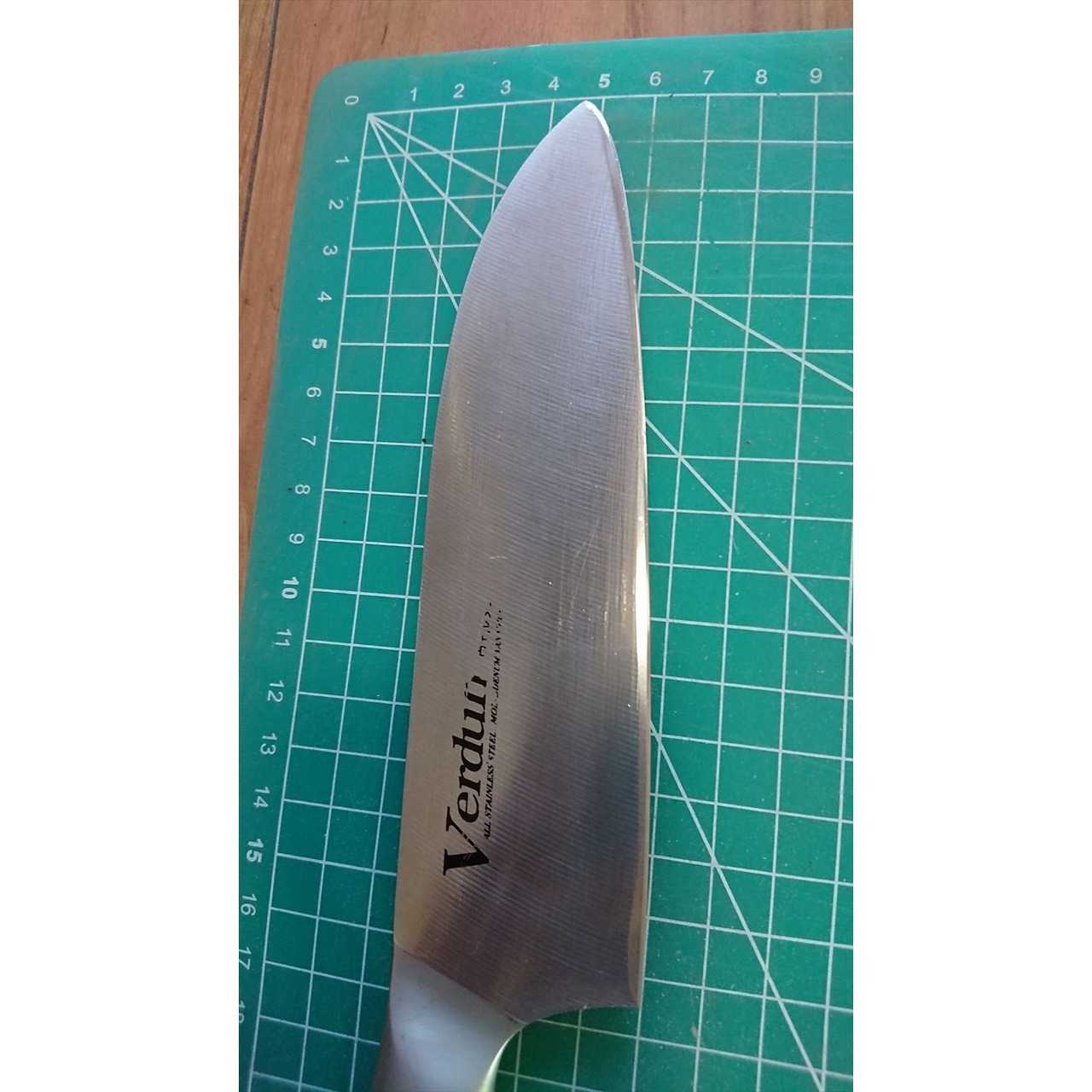 1. o2445/状態:中古/銘:Verdun/三徳包丁(両刃 左5:右5 右利き・左利き兼用)/刃長:160/峰厚 アゴ上:1.7/重量:112/作り:モリブデンバナジウム鋼/他:
