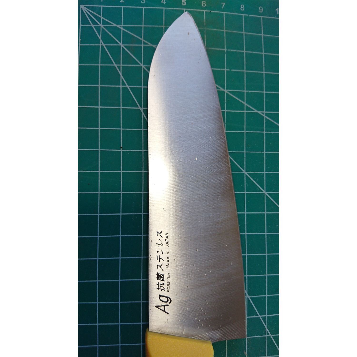 1. o2446/状態:中古/銘:FOREVER/三徳包丁(両刃 左5:右5 右利き・左利き兼用)/刃長:155/峰厚 アゴ上:1.2/重量:78/作り:ステンレス/他: