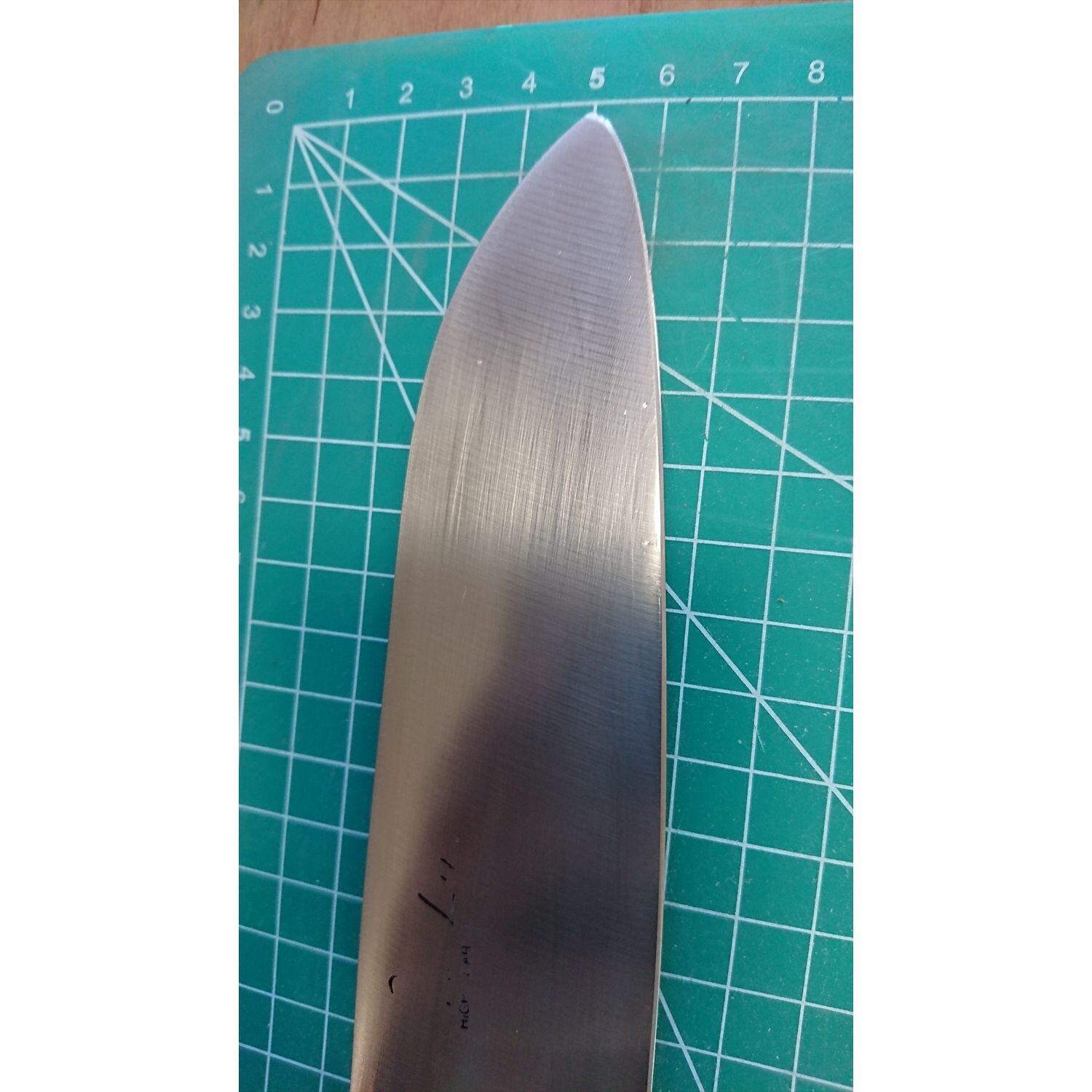 1. o2450/状態:中古/銘:銘?/三徳包丁(両刃 左5:右5 右利き・左利き兼用)/刃長:160/峰厚 アゴ上:1.8/重量:133/作り:ステンレス/他: