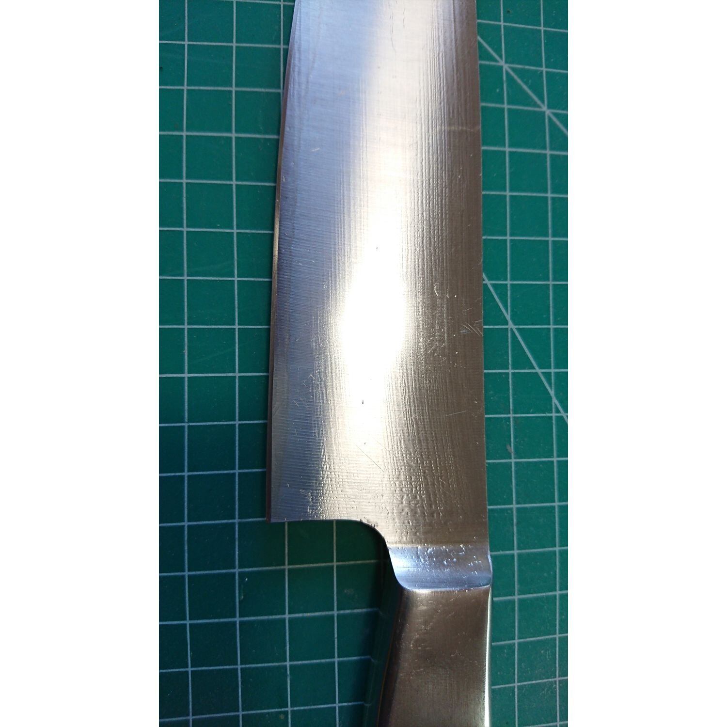 1. o2452/状態:中古/銘:銘?/三徳包丁(両刃 左5:右5 右利き・左利き兼用)/刃長:170/峰厚 アゴ上:2.2/重量:167/作り:ステンレス/他: