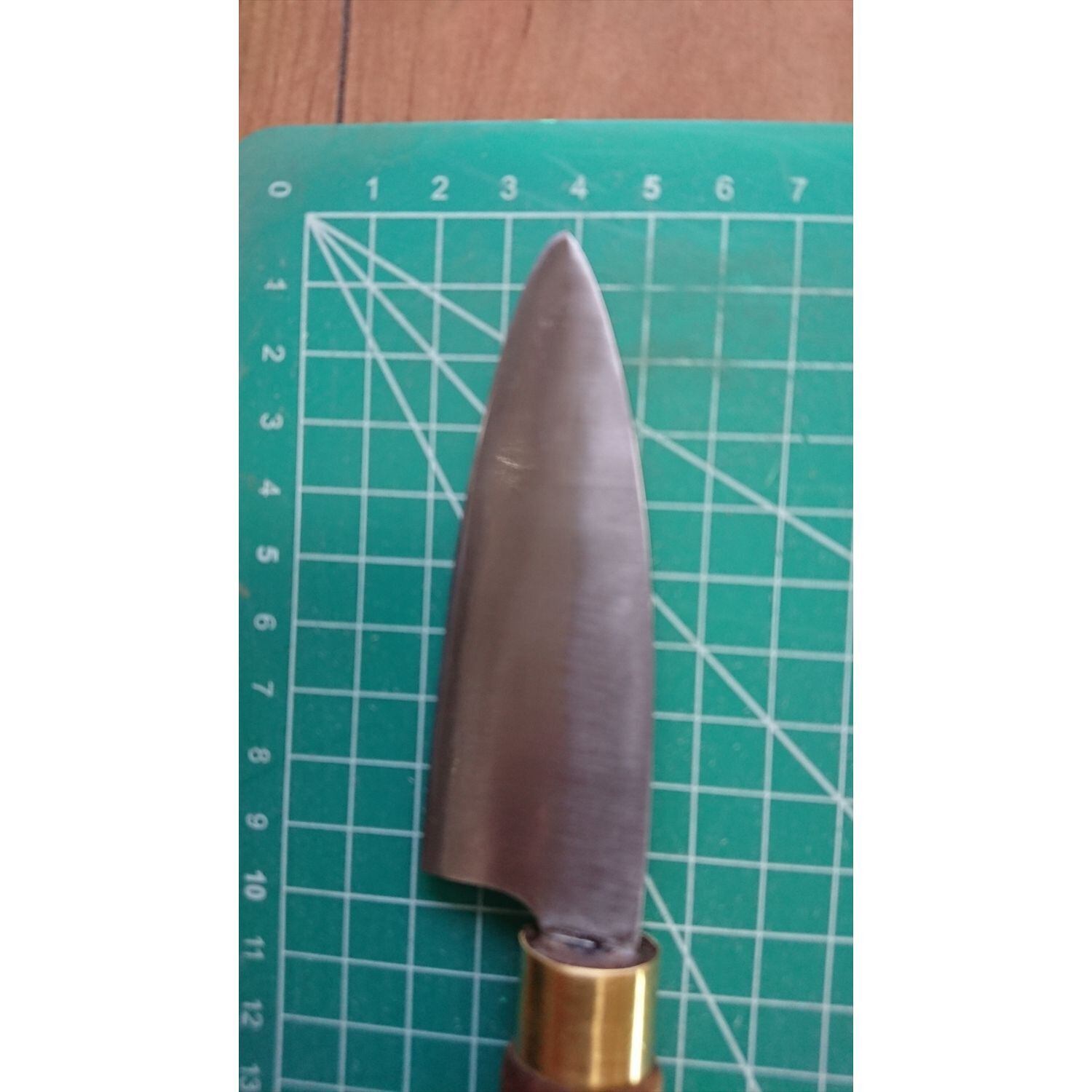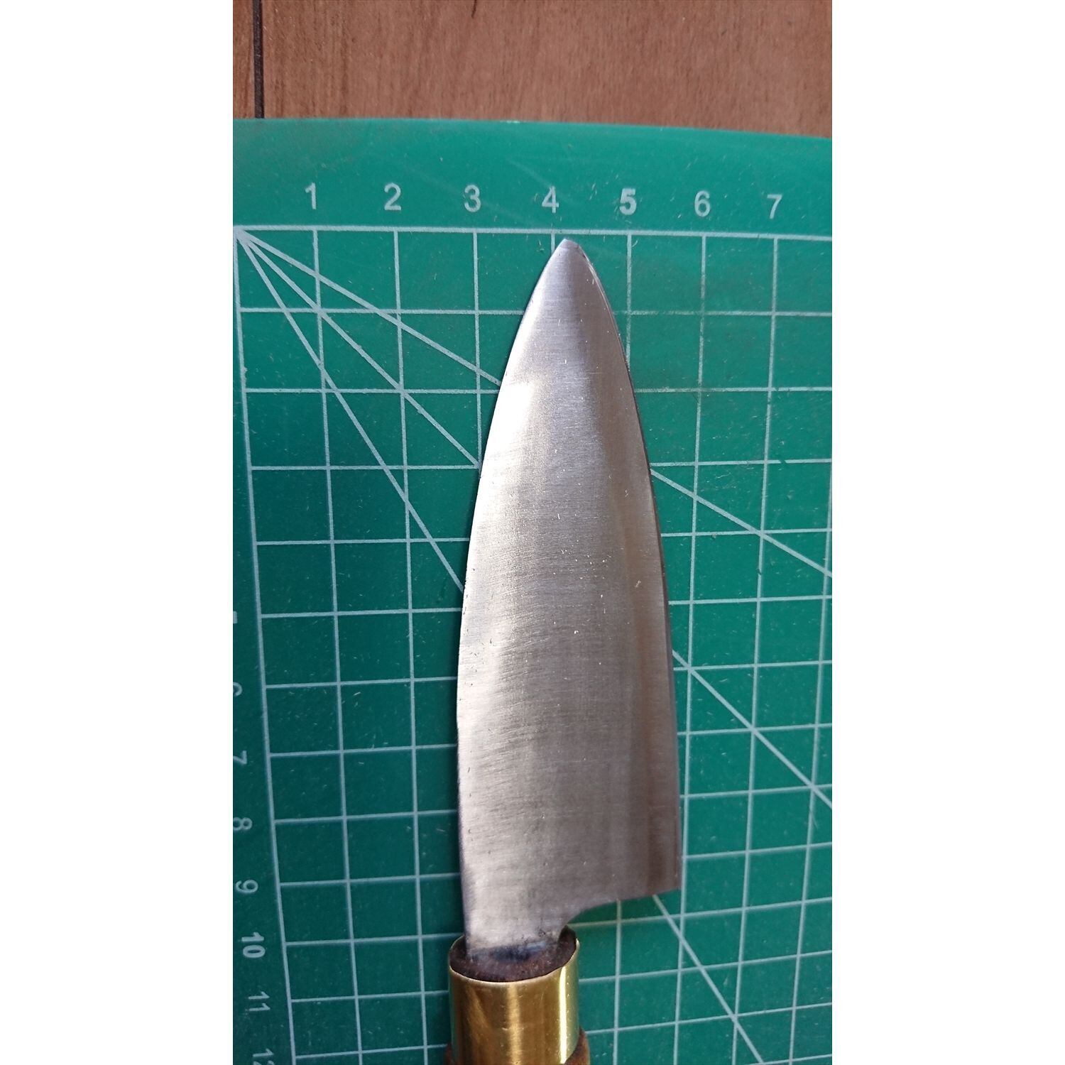 1. o2392/状態:中古/銘:銘?/あじ切り包丁(両刃 左5:右5 右利き・左利き兼用)/刃長:90/峰厚 アゴ上:1.5/重量:46/作り:鋼 元黒打/他: