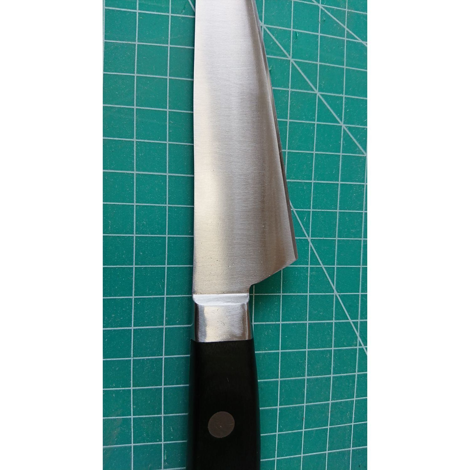 1. o2563/状態:中古/銘:銘?/骨スキ包丁(両刃 約 左1:右9 右利き用)/刃長:130/峰厚 アゴ上:2.3/重量:139/作り:ステンレス系/他: