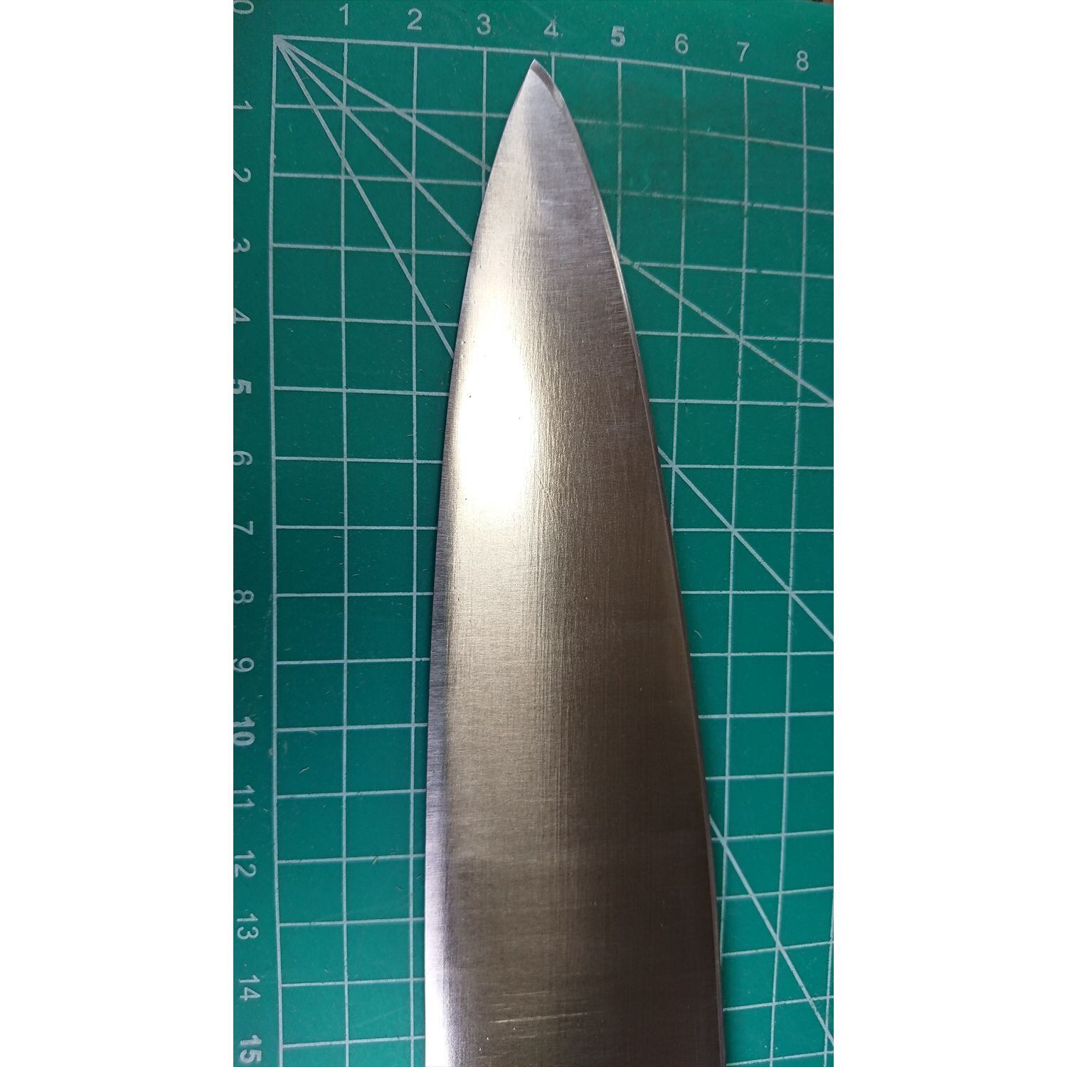 1. o2632/状態:中古/銘:Misono(ミソノ)/牛刀(両刃 左5:右5 右利き・左利き兼用)/刃長:275/峰厚 アゴ上:2.3/重量:263/作り:HANDMADE ステンレスモリブデン鋼/他: